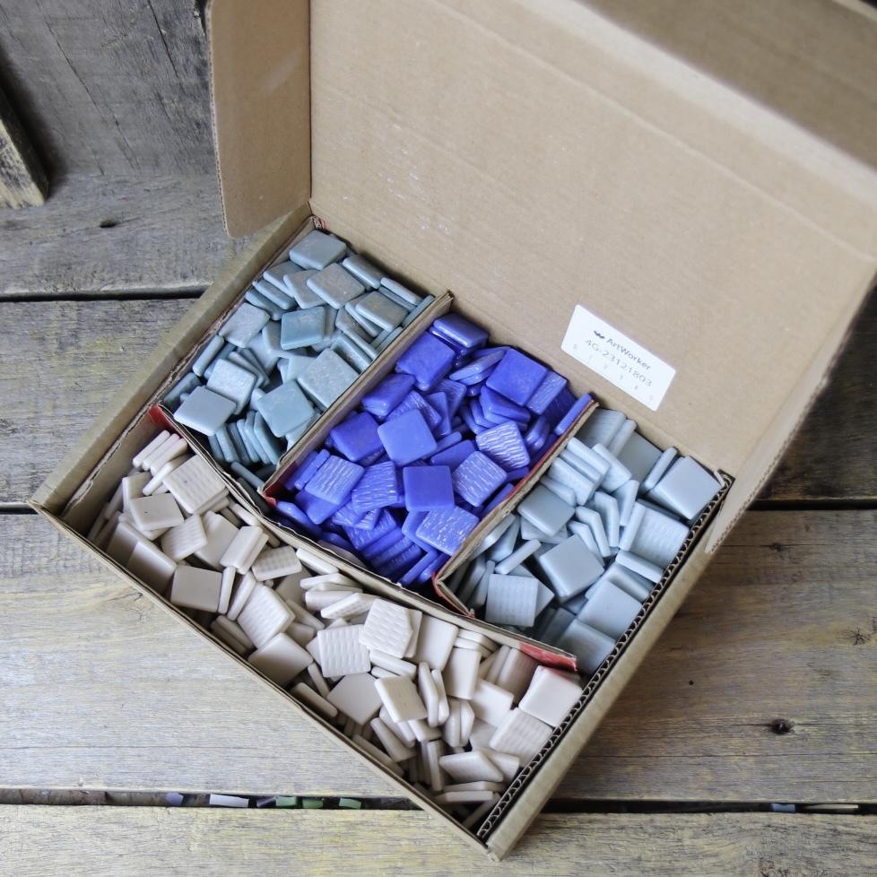 Каждая коробка в единственном экземпляре. Состав SMALTBOX смотрите на фотографии к товару (может содержать как смальту в плитках, так колотую, резанную и бой смальты - доп. смотрите категорию SMALTBOX).
