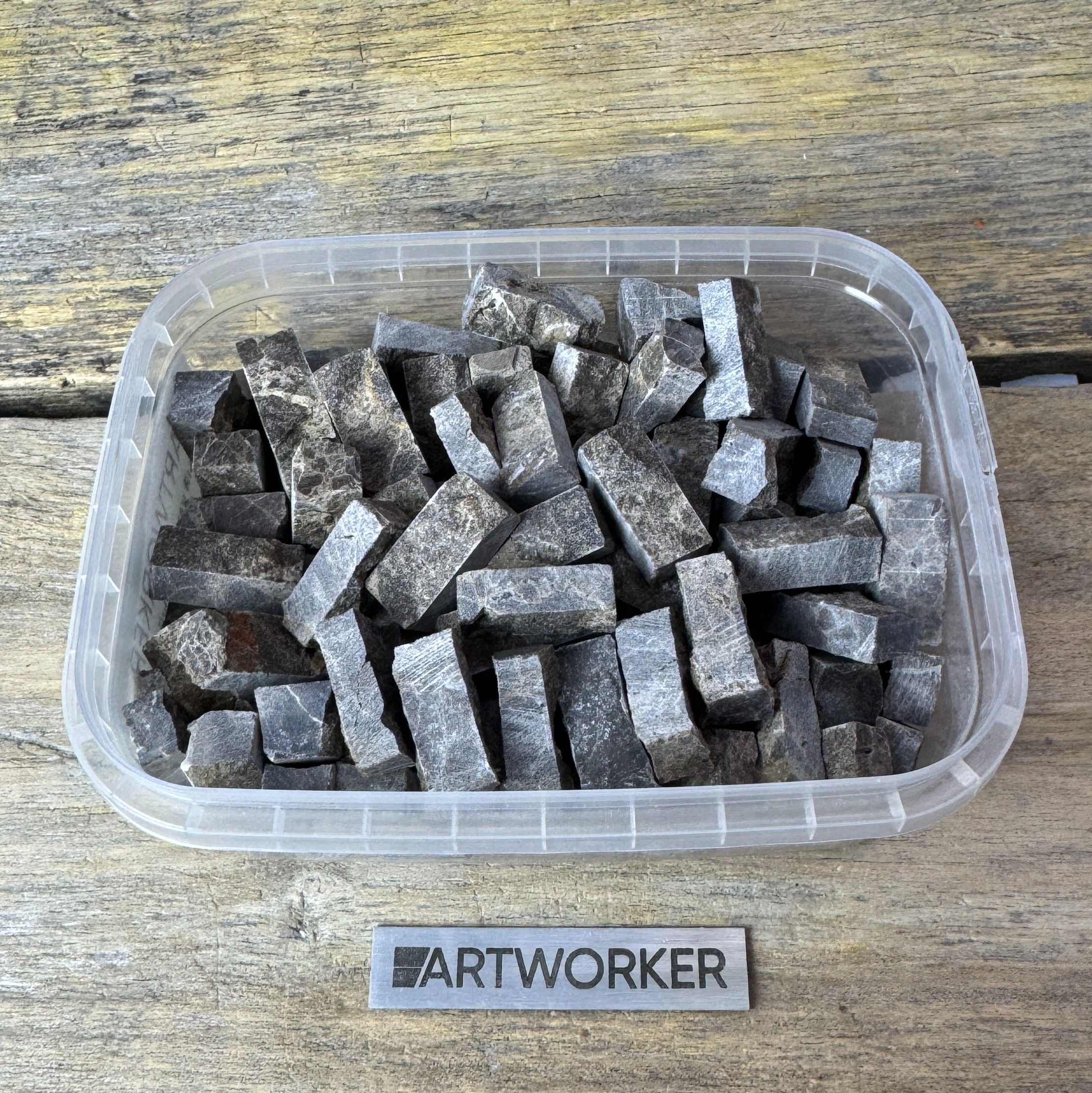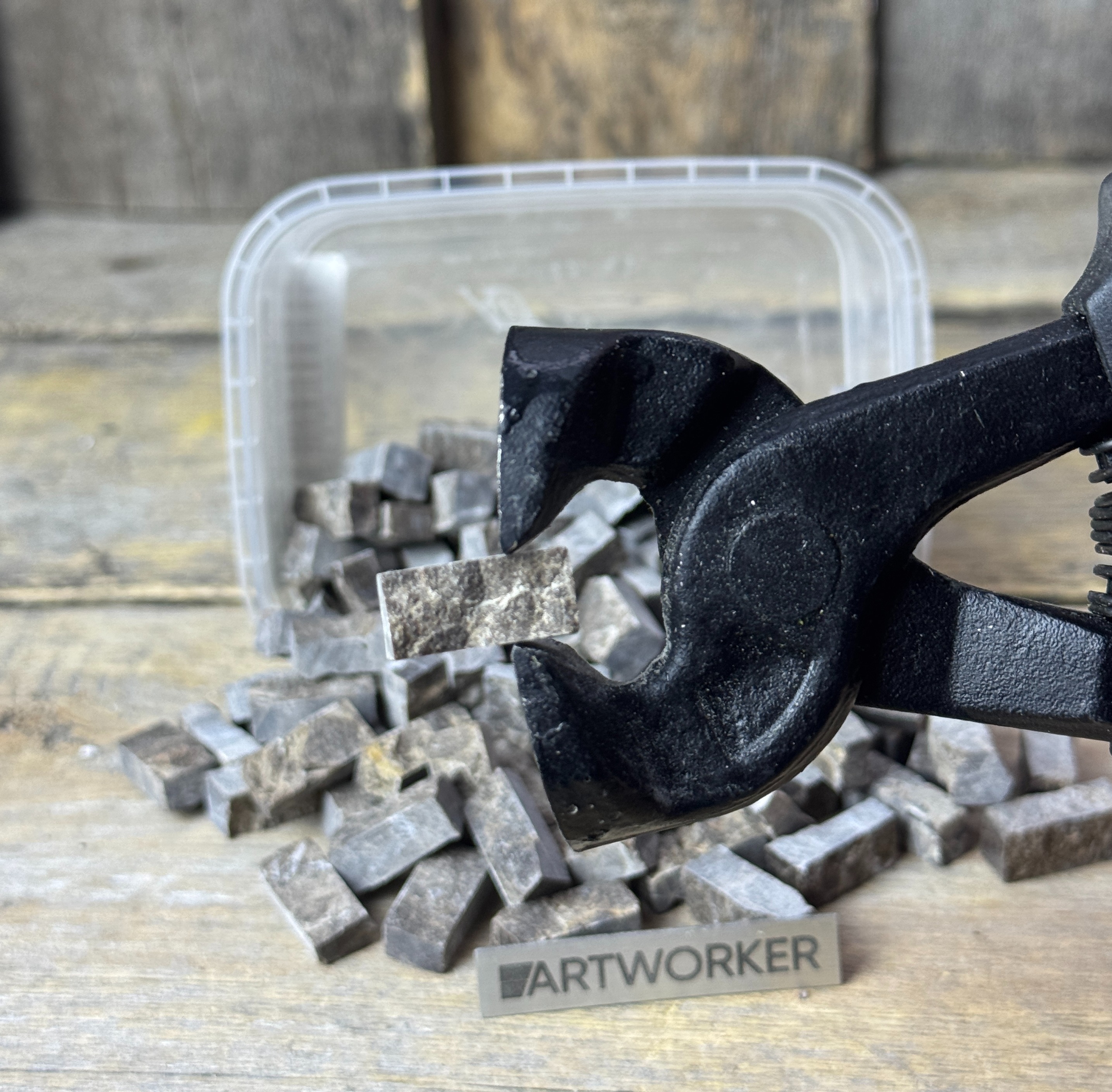 Поставляется в прозрачном контейнере, вес материала и контейнера 350 гр (+/- 20 гр). Для колки натурального камня потребуются кусачки-щипцы (кусачки для мозаики), к примеру RedCut 83 или RedCut 82. Колотый камень можно приклеивать на цементный клей (например Kerabond + Isolastic) или любой другой подходящий клей.