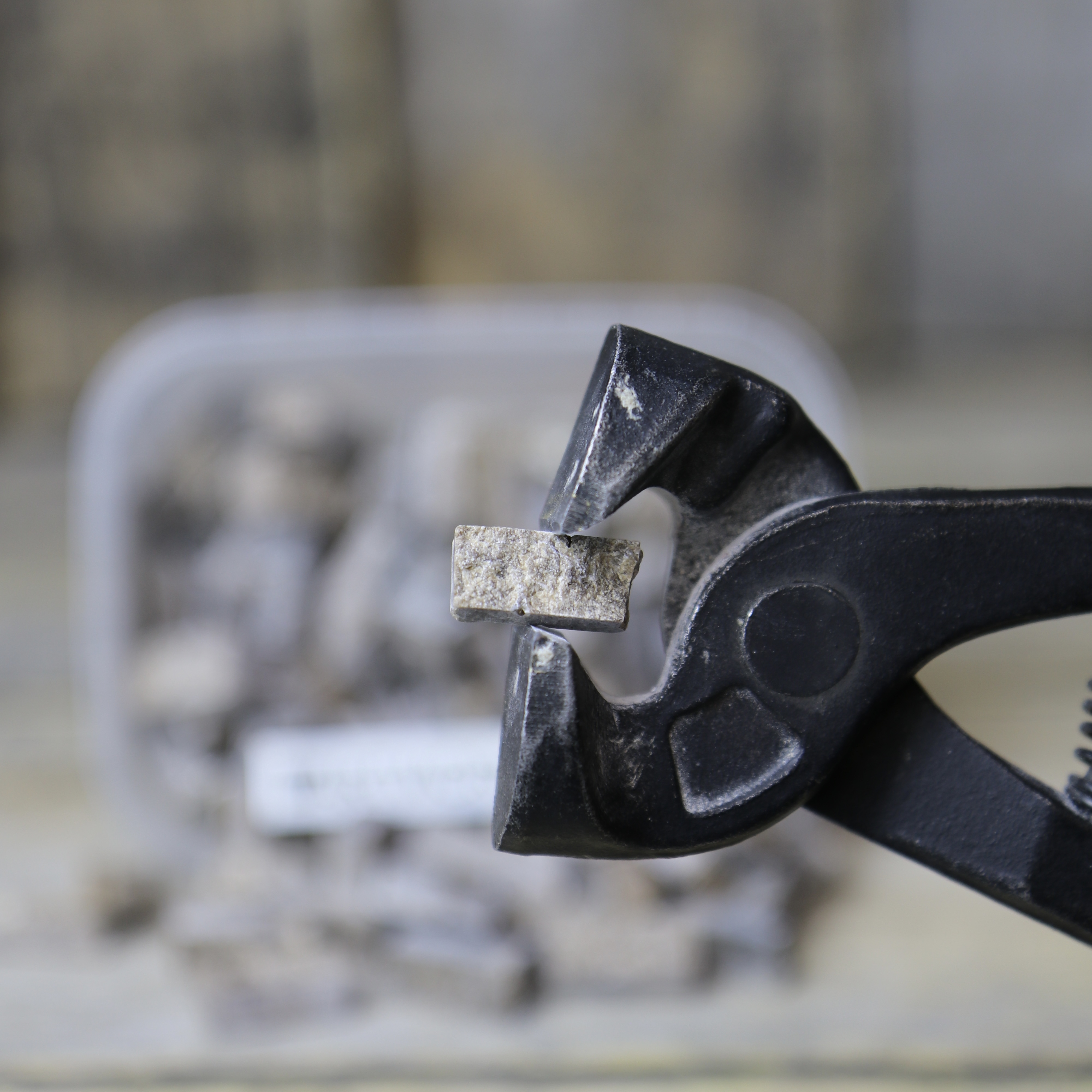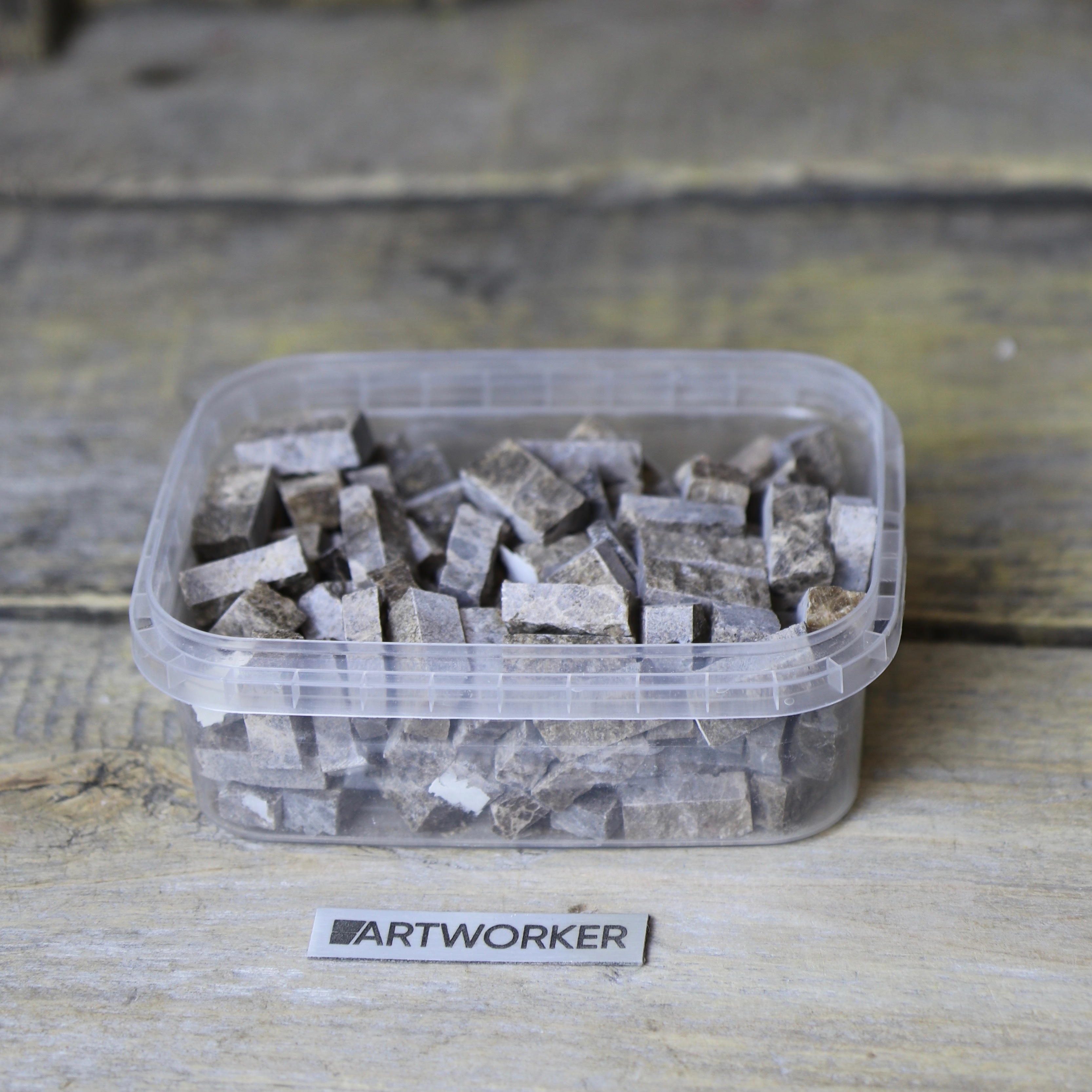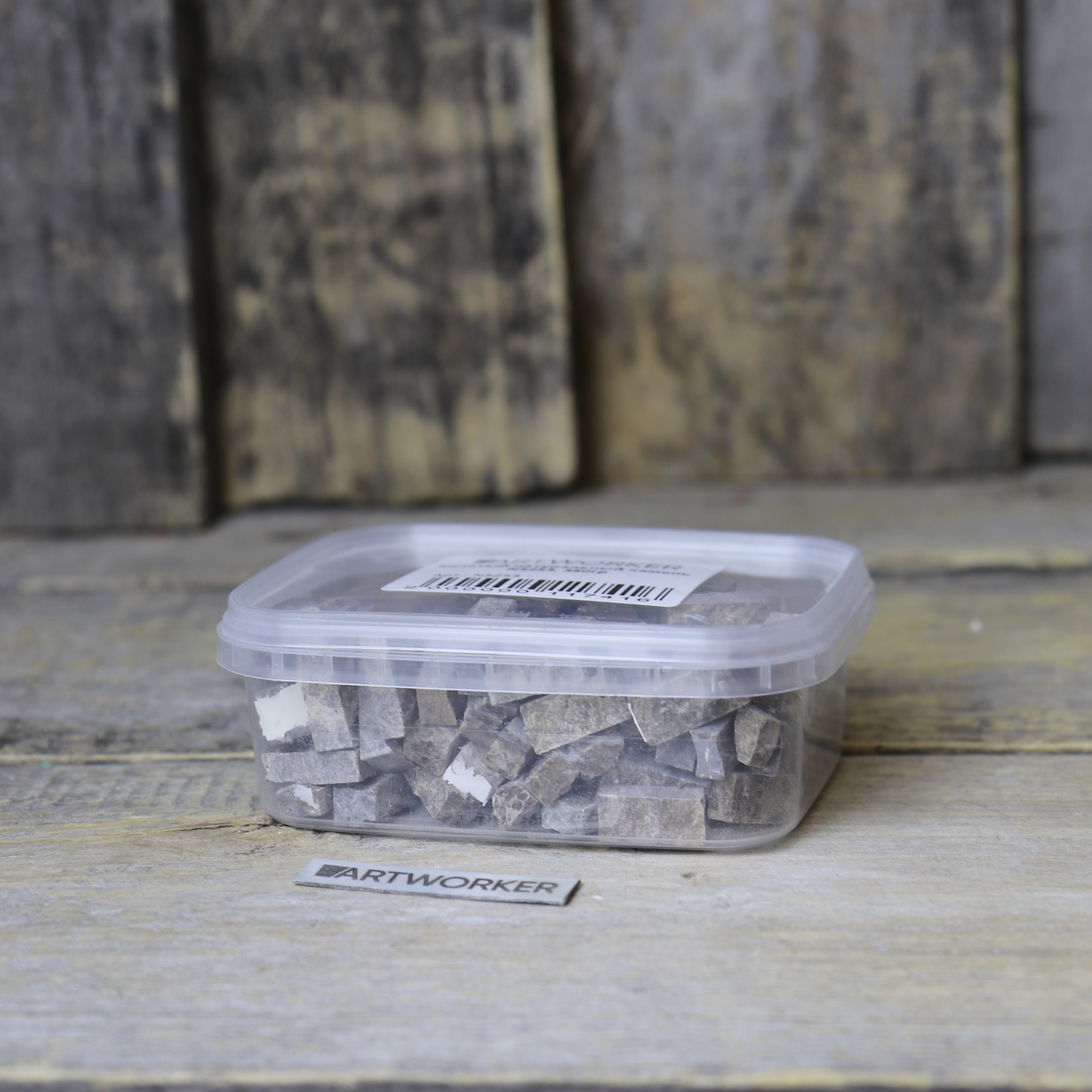 Поставляется в прозрачном контейнере, вес материала и контейнера 350 гр (+/- 20 гр). Для колки натурального камня потребуются кусачки-щипцы (кусачки для мозаики), к примеру RedCut 83 или RedCut 82. Колотый камень можно приклеивать на цементный клей (например Kerabond + Isolastic) или любой другой подходящий клей.