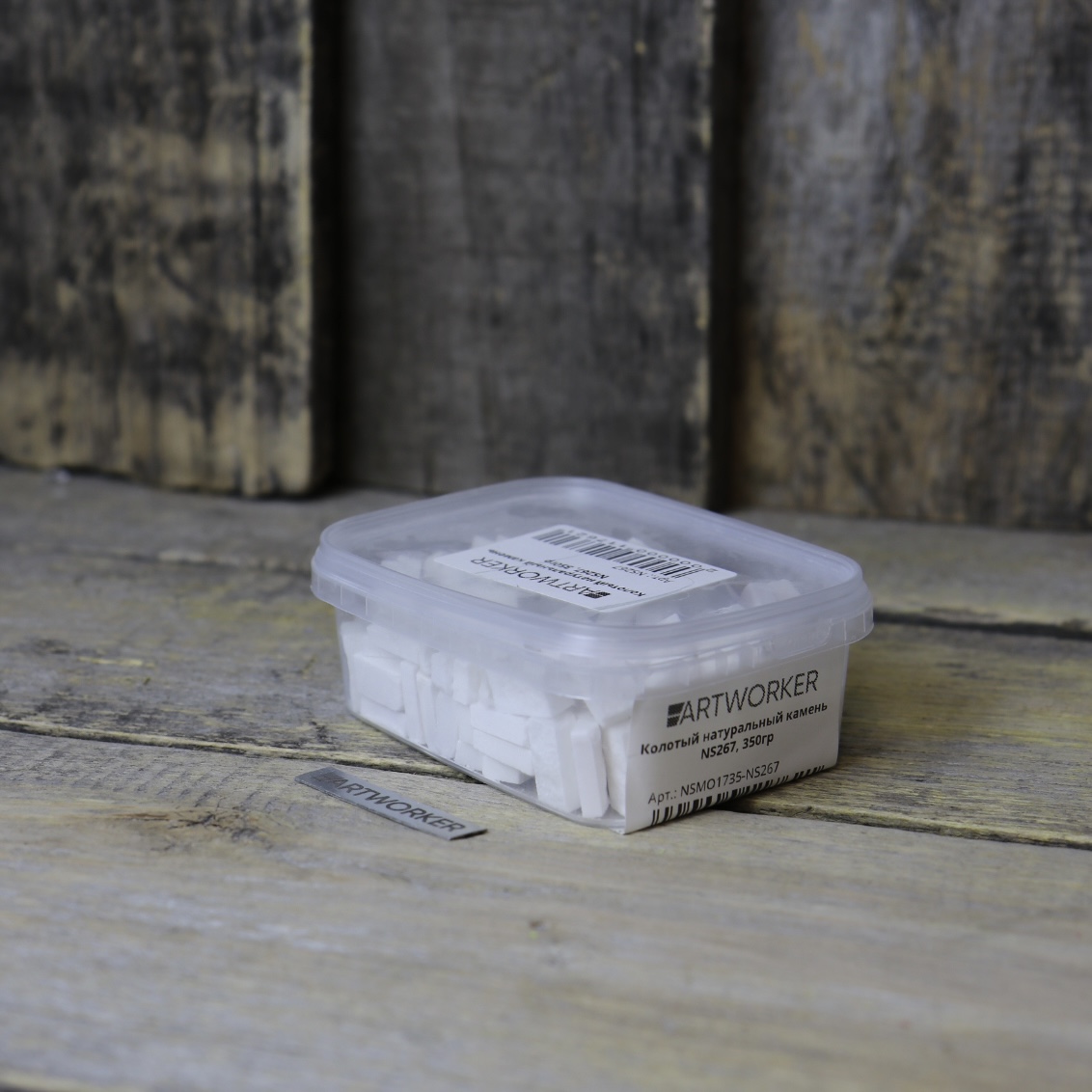 Поставляется в прозрачном контейнере, вес материала и контейнера 350 гр (+/- 20 гр). Для колки натурального камня потребуются кусачки-щипцы (кусачки для мозаики), к примеру RedCut 83 или RedCut 82. Колотый камень можно приклеивать на цементный клей (например Kerabond + Isolastic) или любой другой подходящий клей.