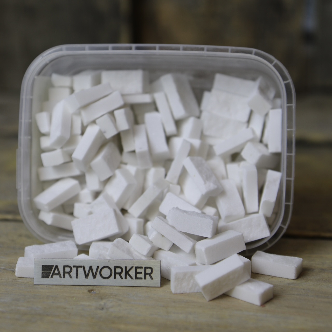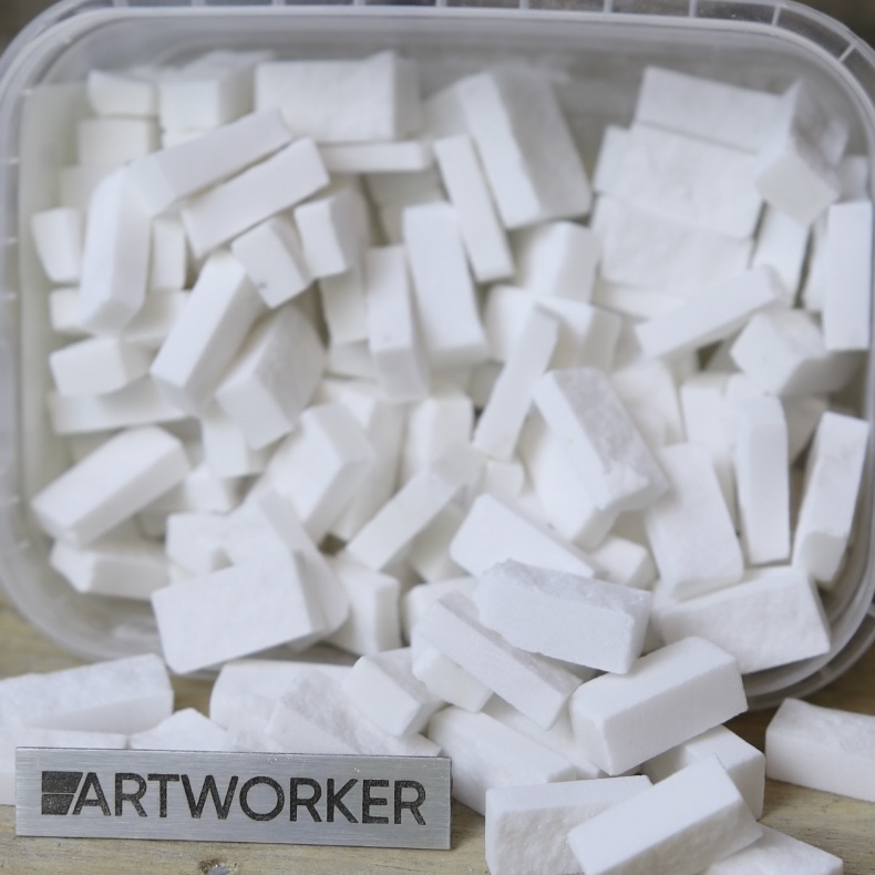 Поставляется в прозрачном контейнере, вес материала и контейнера 350 гр. Для колки натурального камня потребуются кусачки-щипцы (кусачки для мозаики), к примеру RedCut 83 или RedCut 82. Колотый камень можно приклеивать на цементный клей (например Kerabond + Isolastic) или любой другой подходящий клей.