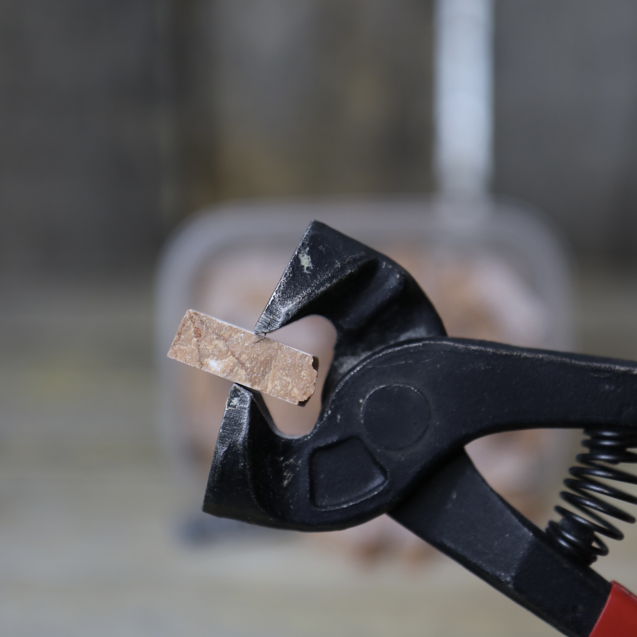 Поставляется в прозрачном контейнере, вес материала и контейнера 350 гр (+/- 20 гр). Для колки натурального камня потребуются кусачки-щипцы (кусачки для мозаики), к примеру RedCut 83 или RedCut 82. Колотый камень можно приклеивать на цементный клей (например Kerabond + Isolastic) или любой другой подходящий клей.
