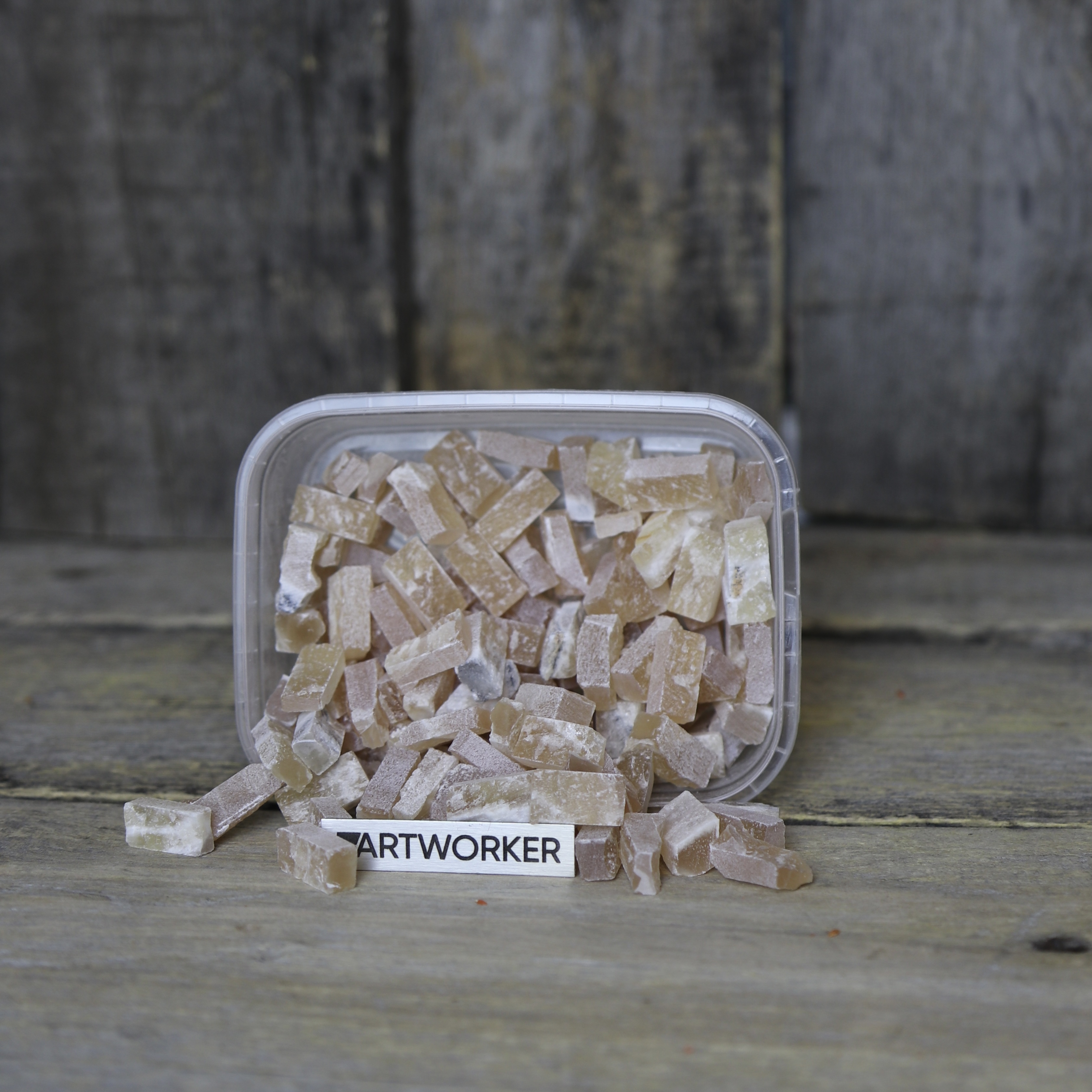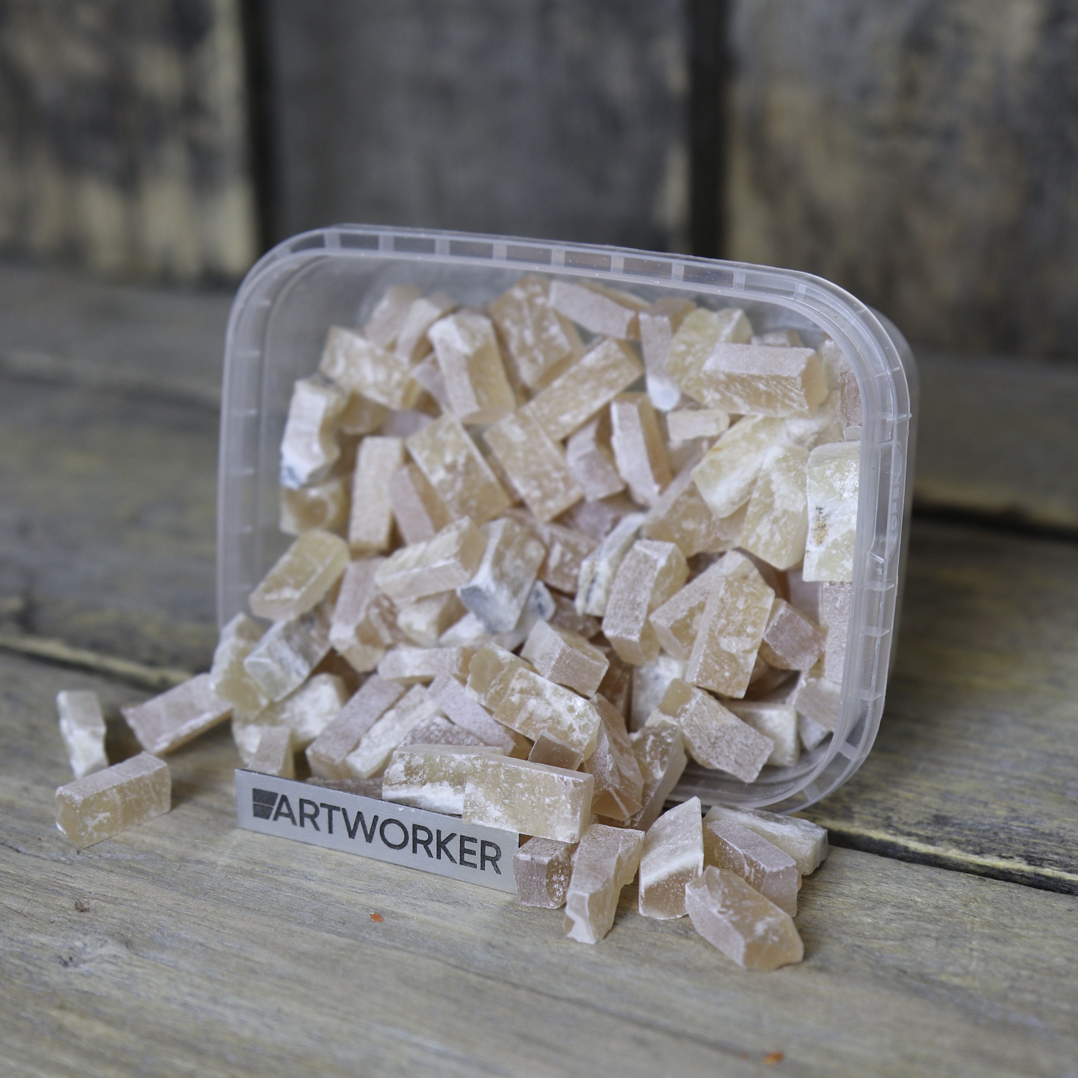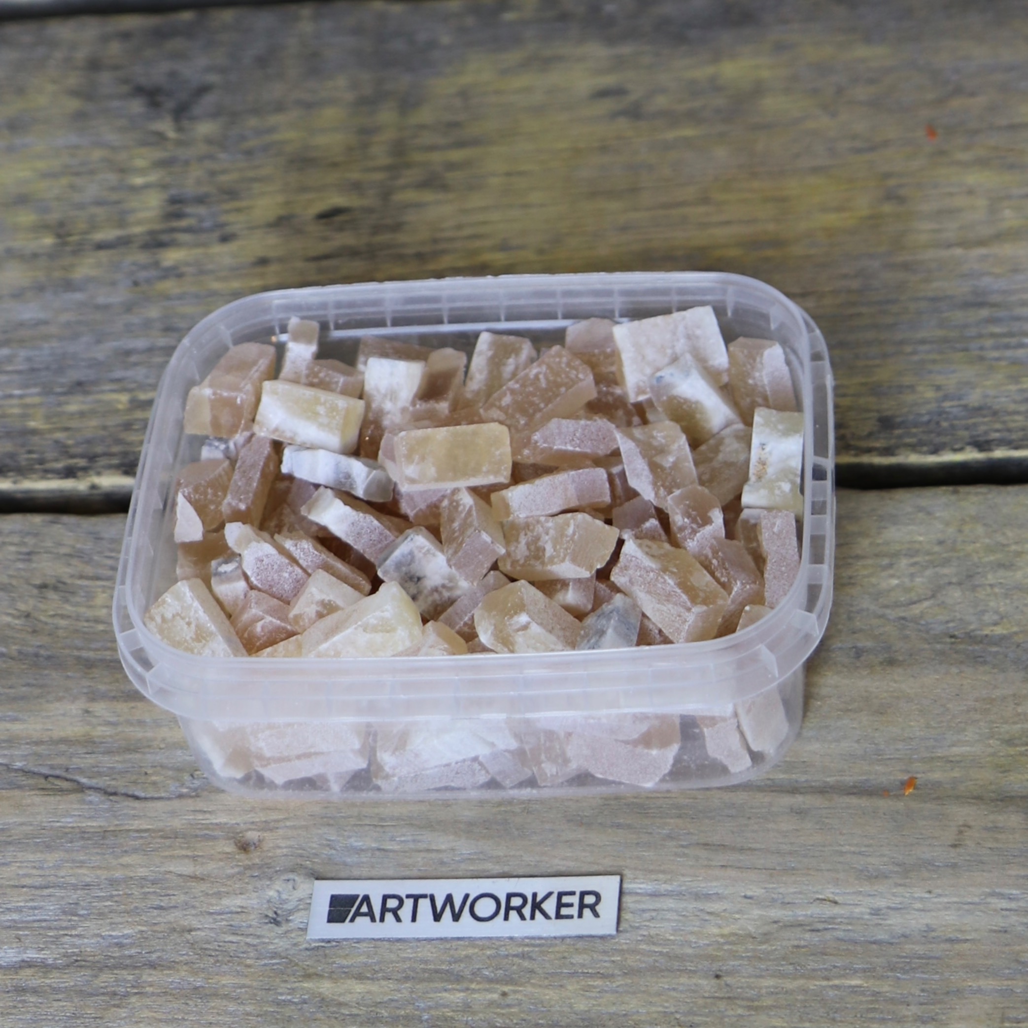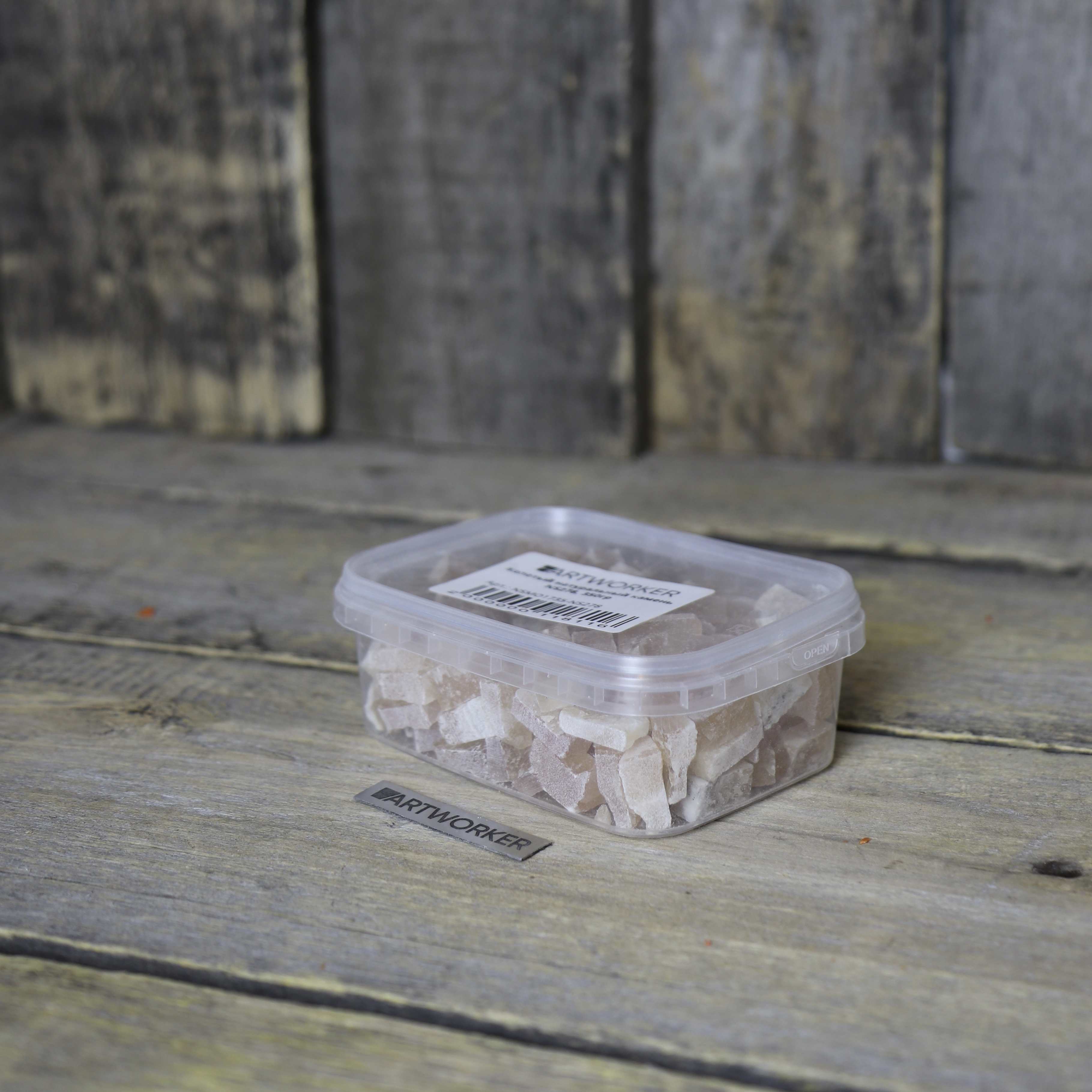 Поставляется в прозрачном контейнере, вес материала и контейнера 350 гр (+/- 20 гр). Для колки натурального камня потребуются кусачки-щипцы (кусачки для мозаики), к примеру RedCut 83 или RedCut 82. Колотый камень можно приклеивать на цементный клей (например Kerabond + Isolastic) или любой другой подходящий клей.