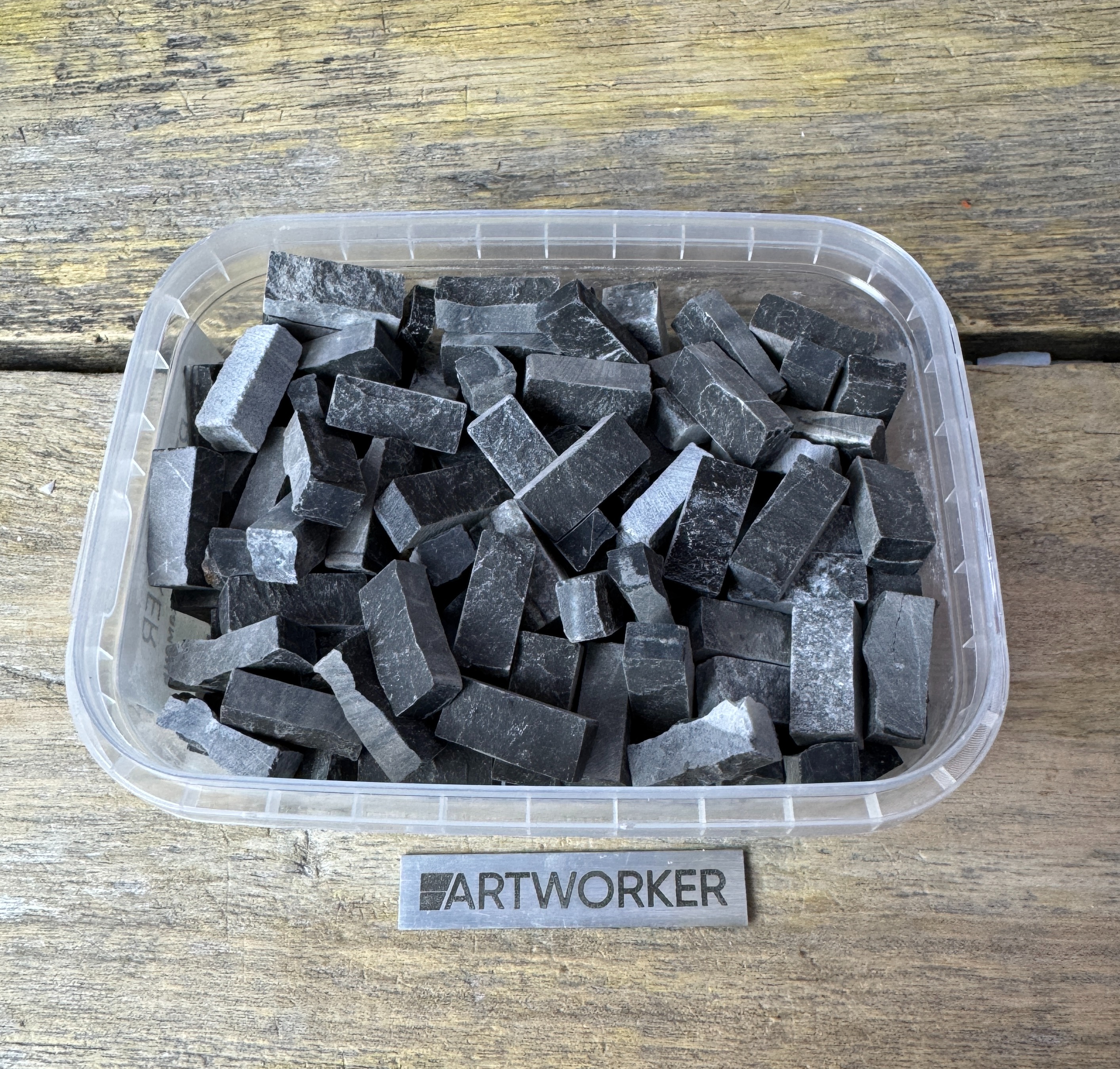 Поставляется в прозрачном контейнере, вес материала и контейнера 350 гр (+/- 20 гр). Для колки натурального камня потребуются кусачки-щипцы (кусачки для мозаики), к примеру RedCut 83 или RedCut 82. Колотый камень можно приклеивать на цементный клей (например Kerabond + Isolastic) или любой другой подходящий клей.