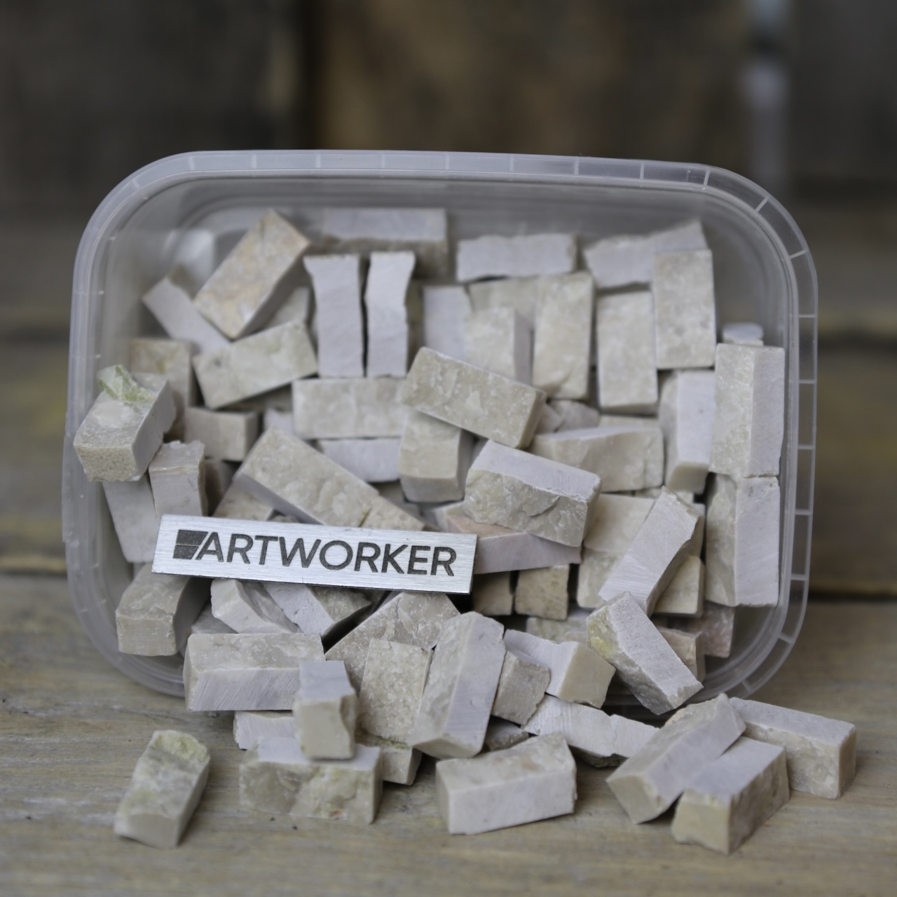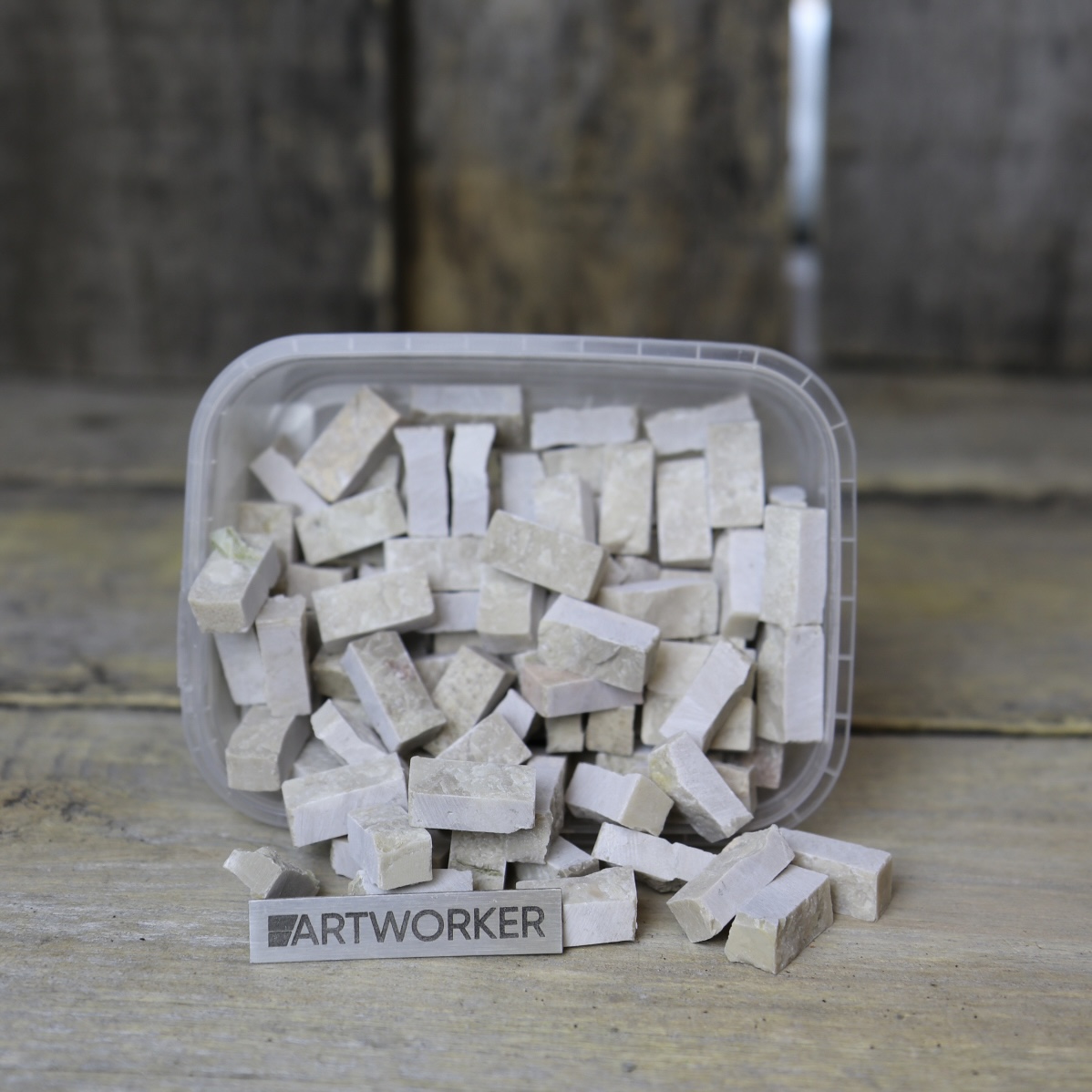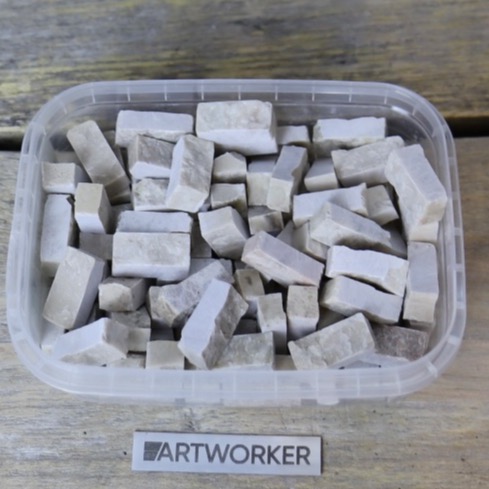 Поставляется в прозрачном контейнере, вес материала и контейнера 350 гр (+/- 20 гр). Для колки натурального камня потребуются кусачки-щипцы (кусачки для мозаики), к примеру RedCut 83 или RedCut 82. Колотый камень можно приклеивать на цементный клей (например Kerabond + Isolastic) или любой другой подходящий клей.