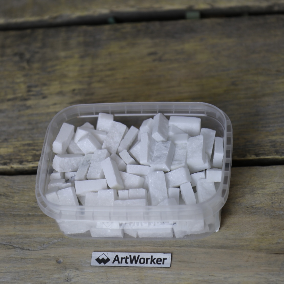 Поставляется в прозрачном контейнере, вес материала и контейнера 350 гр (+/- 20 гр). Для колки натурального камня потребуются кусачки-щипцы (кусачки для мозаики), к примеру RedCut 83 или RedCut 82. Колотый камень можно приклеивать на цементный клей (например Kerabond + Isolastic) или любой другой подходящий клей.