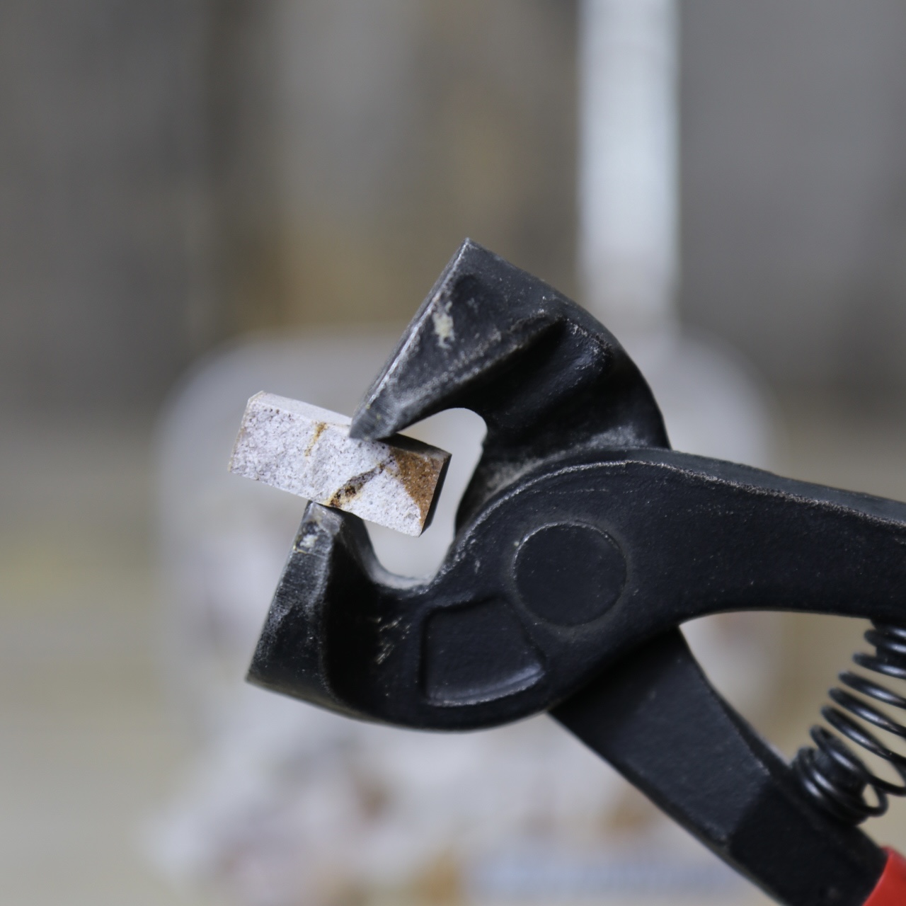 Поставляется в прозрачном контейнере, вес материала и контейнера 350 гр (+/- 20 гр). Для колки натурального камня потребуются кусачки-щипцы (кусачки для мозаики), к примеру RedCut 83 или RedCut 82. Колотый камень можно приклеивать на цементный клей (например Kerabond + Isolastic) или любой другой подходящий клей.