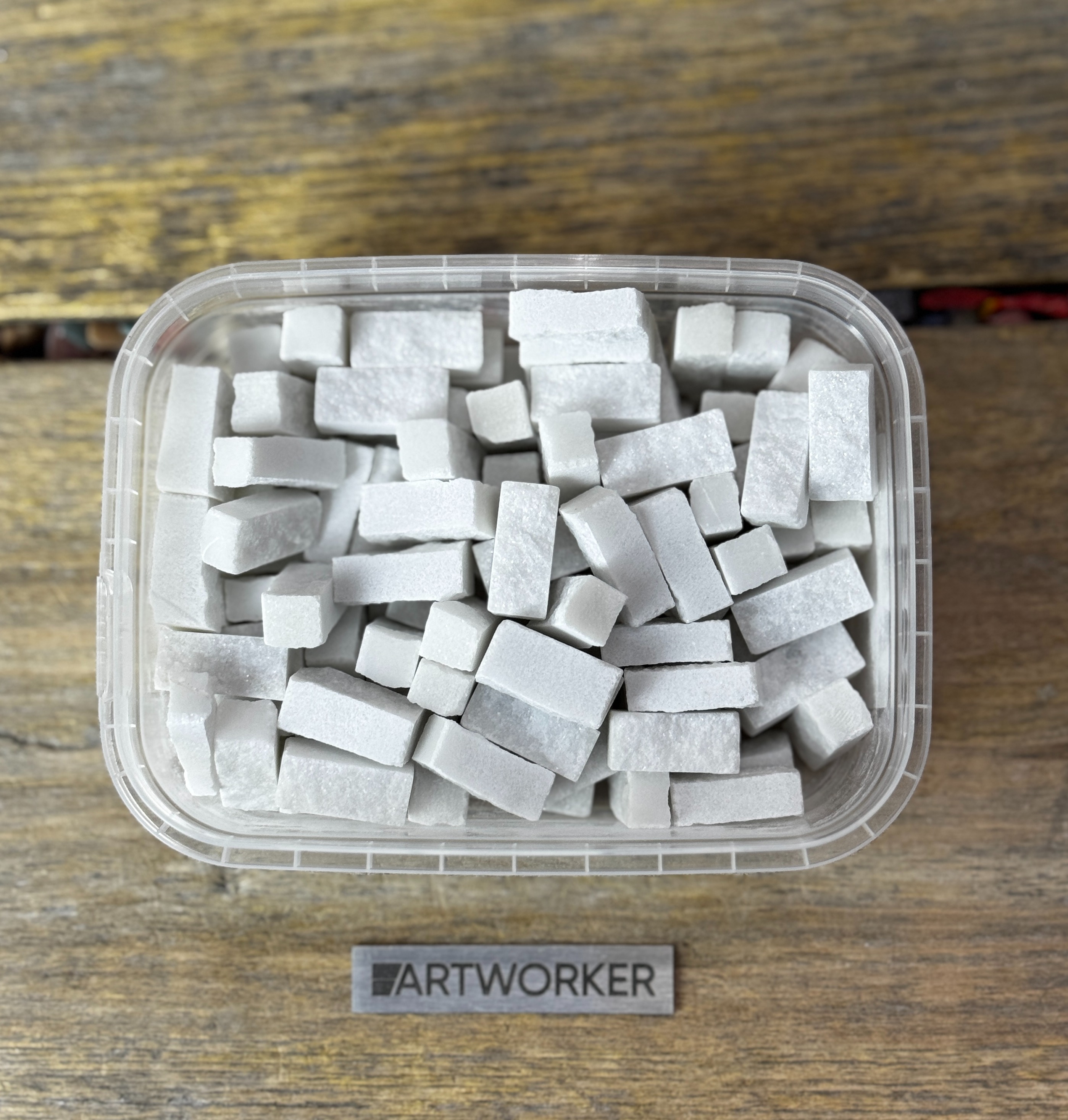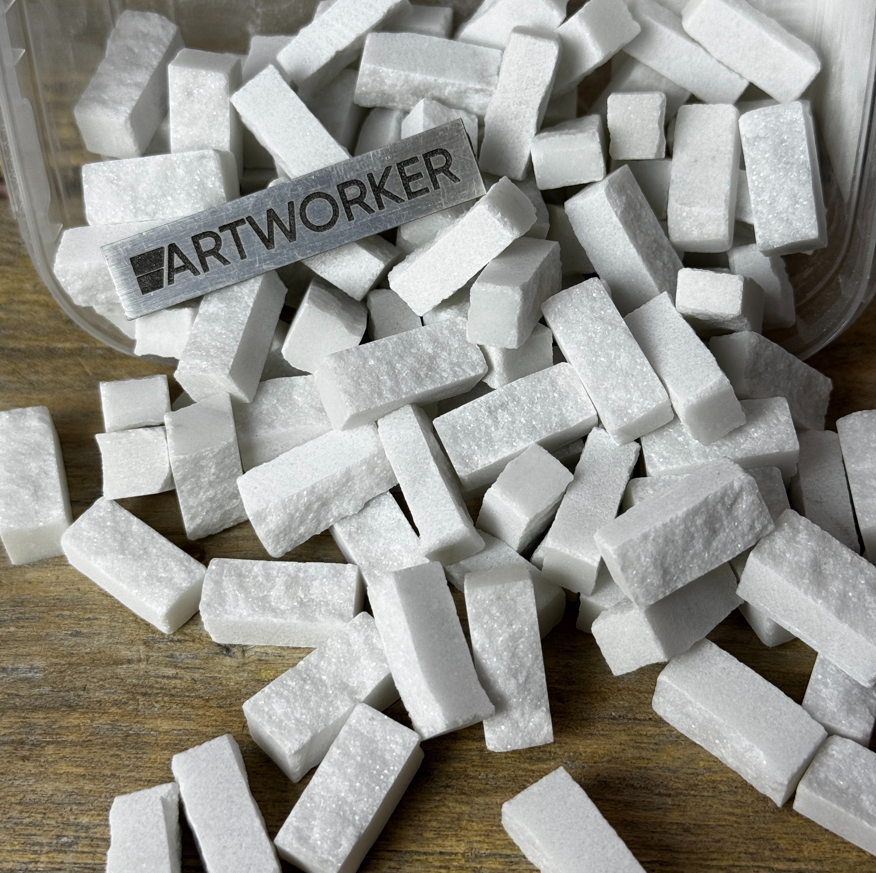 Набор колотого белого камня для мозаики. Модуль 20х10х5 (+/-2 мм). Отличный выбор для мозаики и творческих проектов.