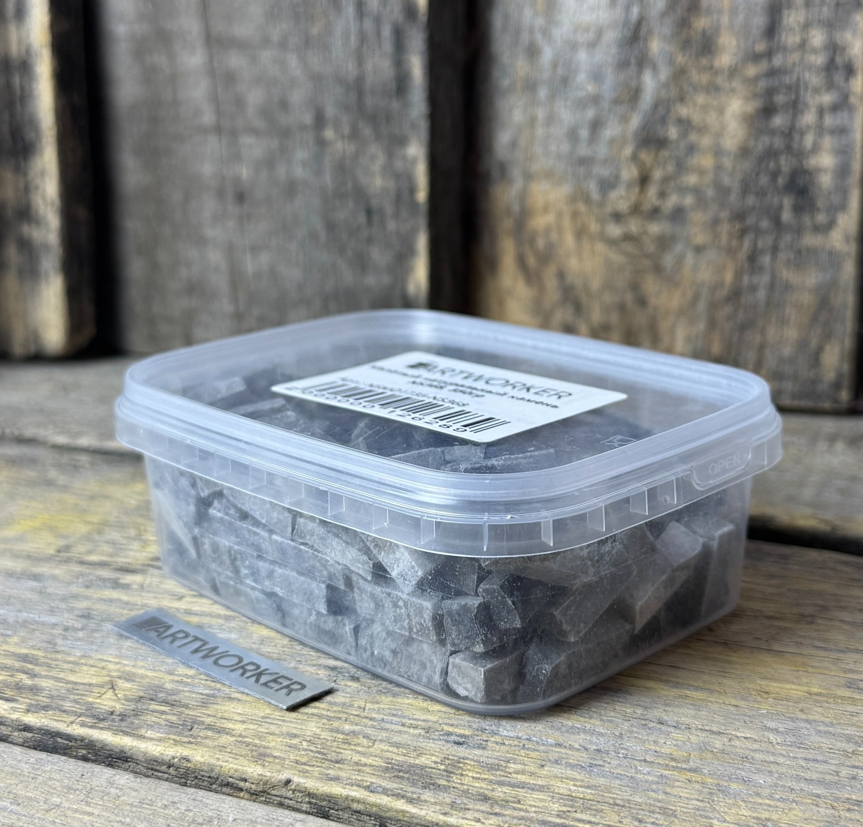 Поставляется в прозрачном контейнере, вес материала и контейнера 350 гр (+/- 20 гр). Для колки натурального камня потребуются кусачки-щипцы (кусачки для мозаики), к примеру RedCut 83 или RedCut 82. Колотый камень можно приклеивать на цементный клей (например Kerabond + Isolastic) или любой другой подходящий клей.