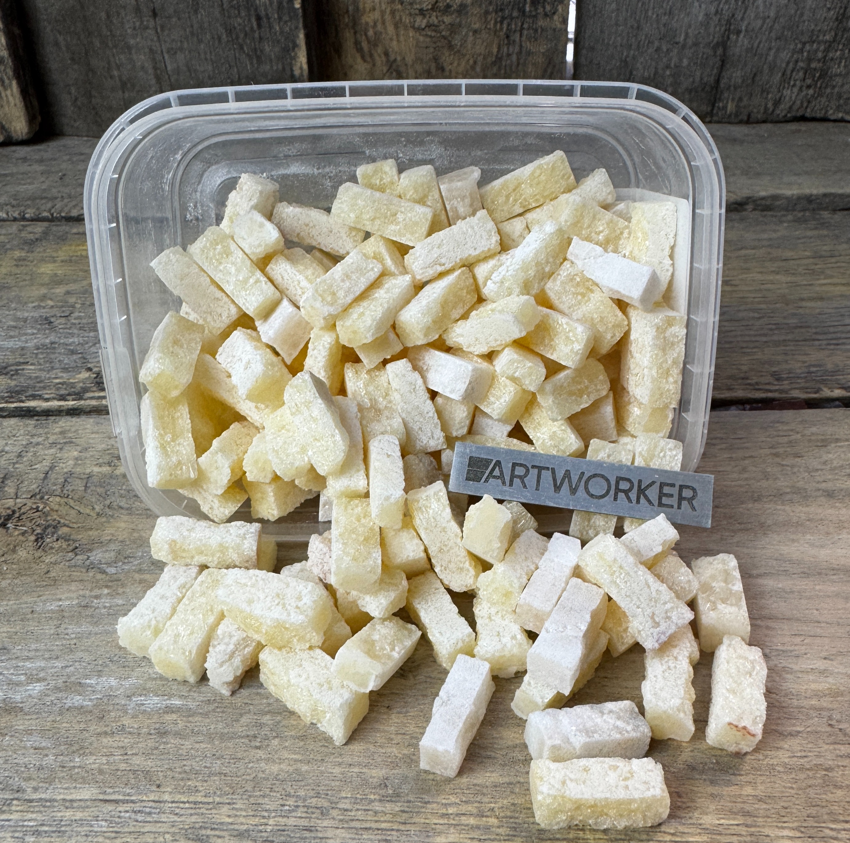 Поставляется в прозрачном контейнере, вес материала и контейнера 350 гр (+/- 20 гр). Для колки натурального камня потребуются кусачки-щипцы (кусачки для мозаики), к примеру RedCut 83 или RedCut 82. Колотый камень можно приклеивать на цементный клей (например Kerabond + Isolastic) или любой другой подходящий клей.