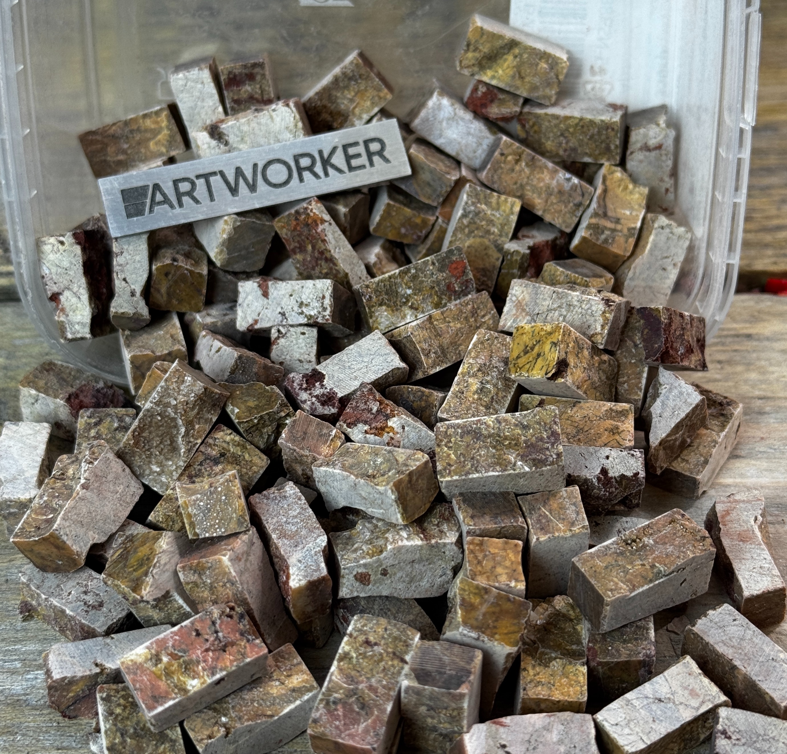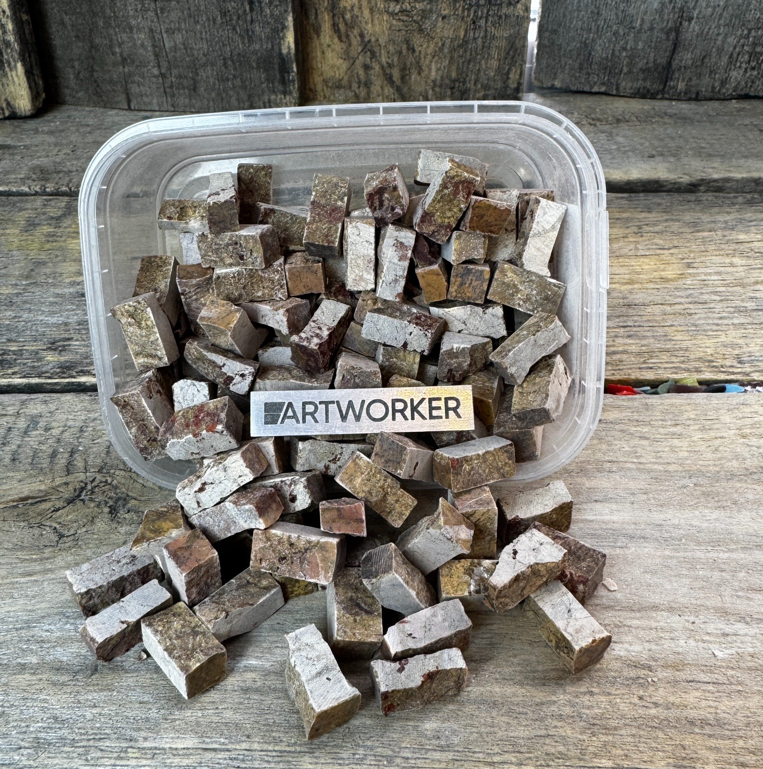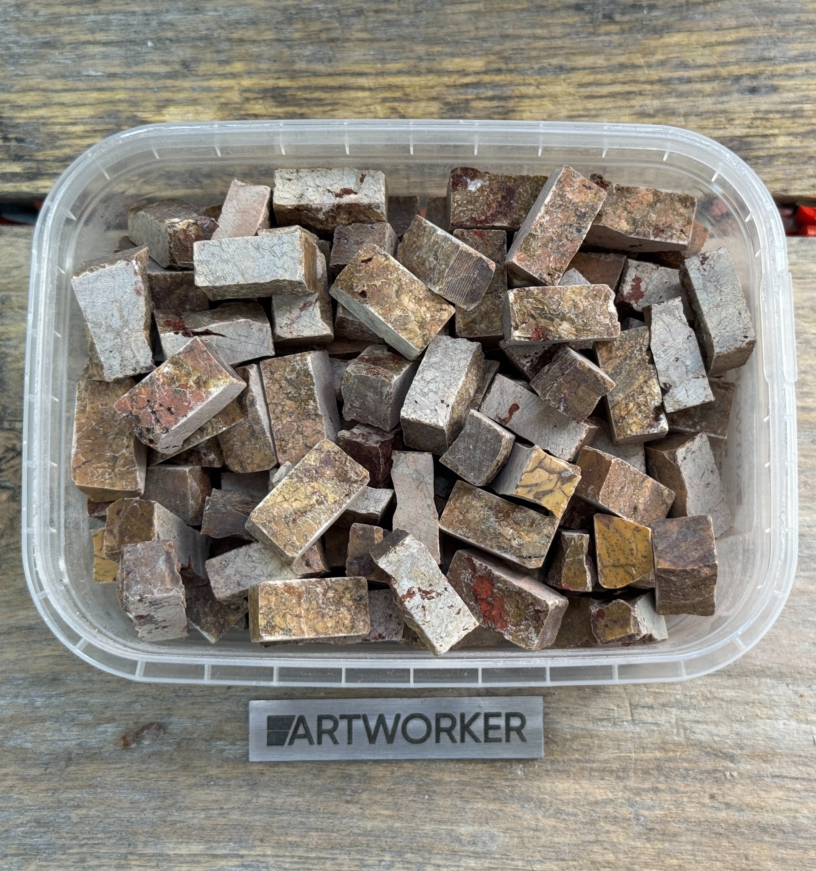 Натуральный колотый камень красных и коричневых оттенков NS385, 350г. Размеры 15х10х5 мм (+/-2 мм). Для мозаики и творчества.