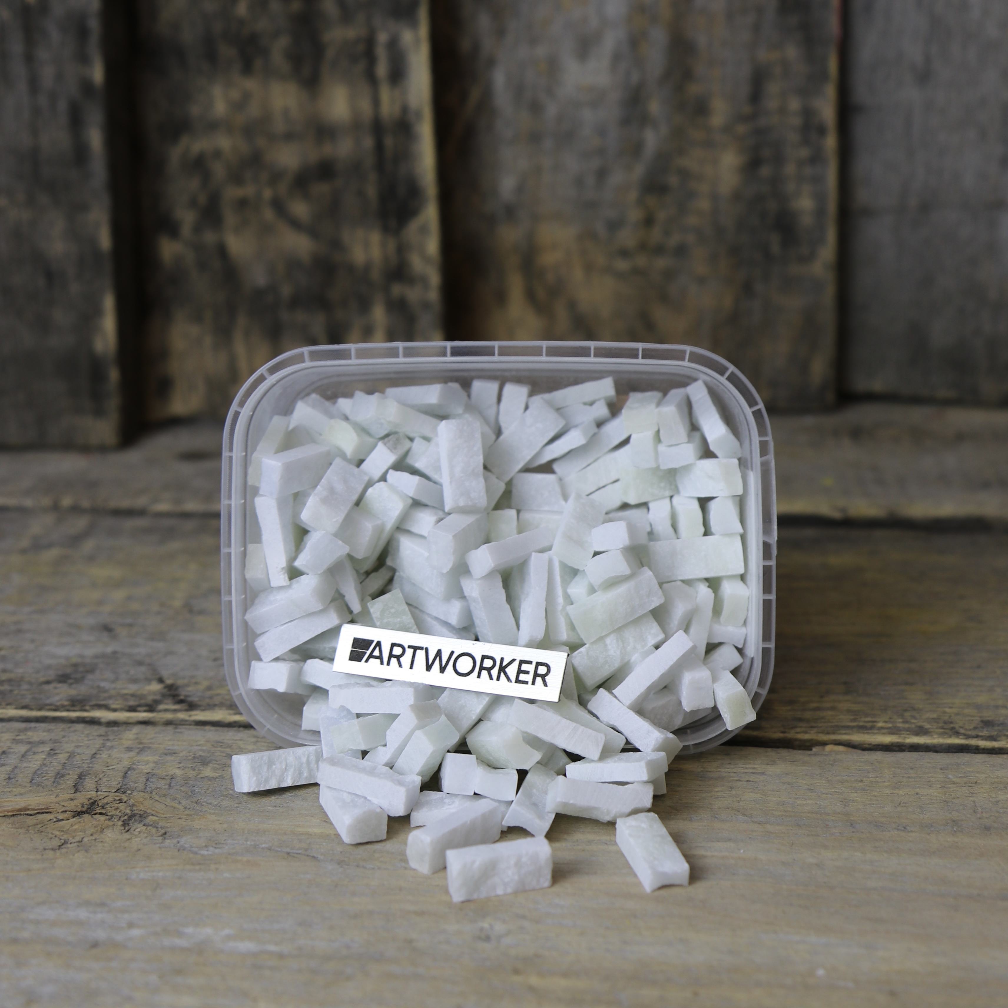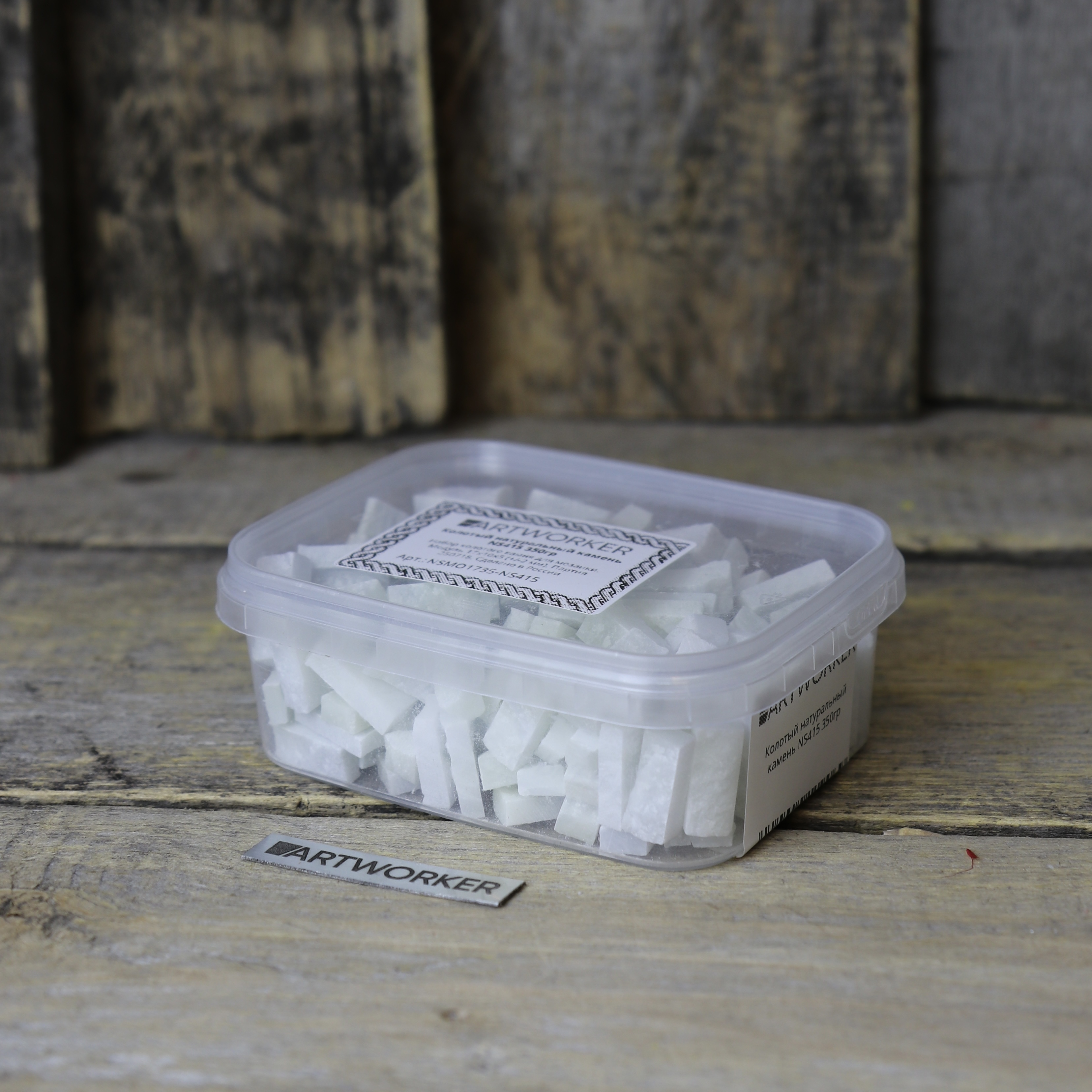 Поставляется в прозрачном контейнере, вес материала и контейнера 350 гр. Для колки натурального камня потребуются кусачки-щипцы (кусачки для мозаики), к примеру RedCut 83 или RedCut 82. Колотый камень можно приклеивать на цементный клей (например Kerabond + Isolastic) или любой другой подходящий клей.
