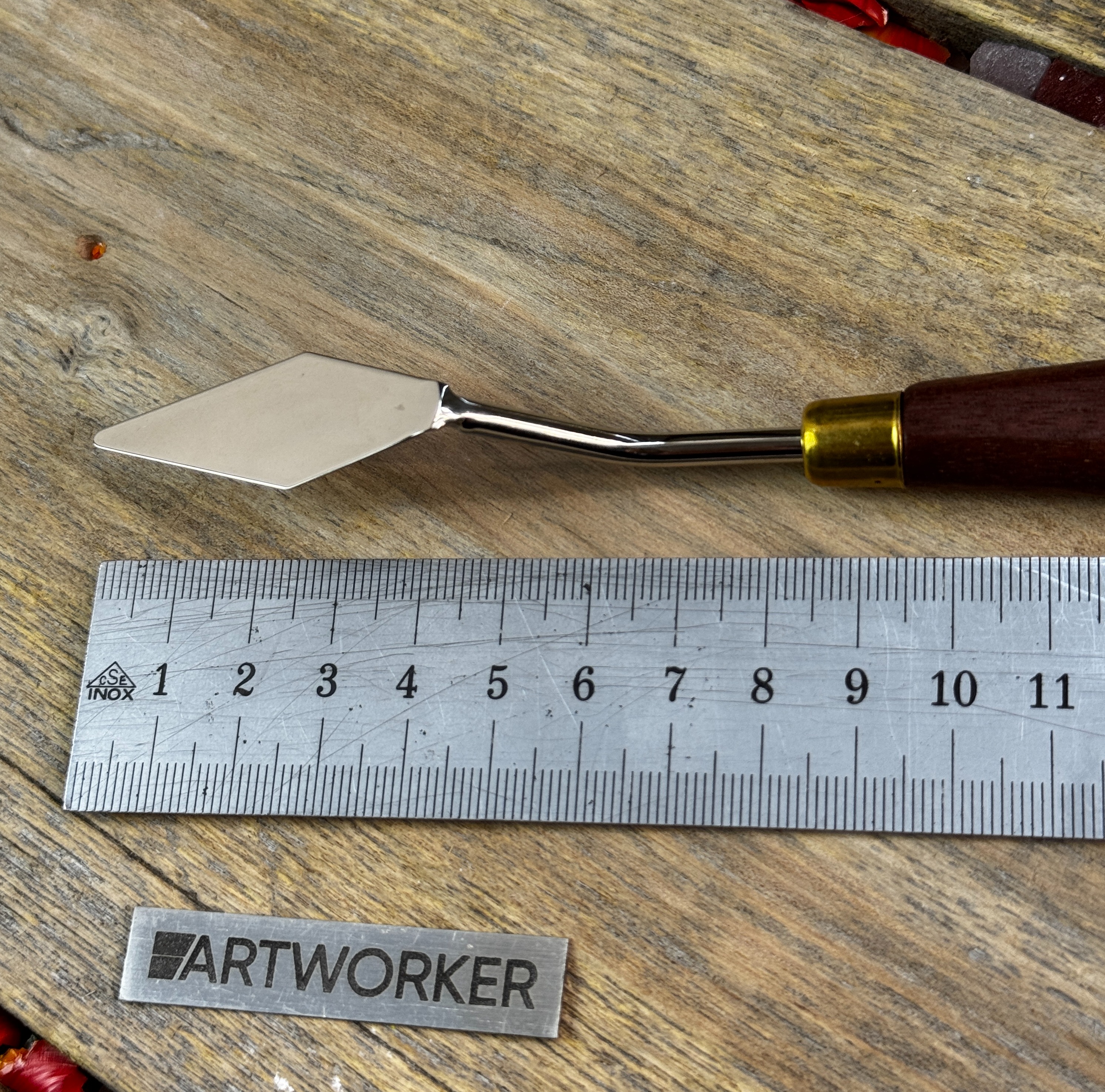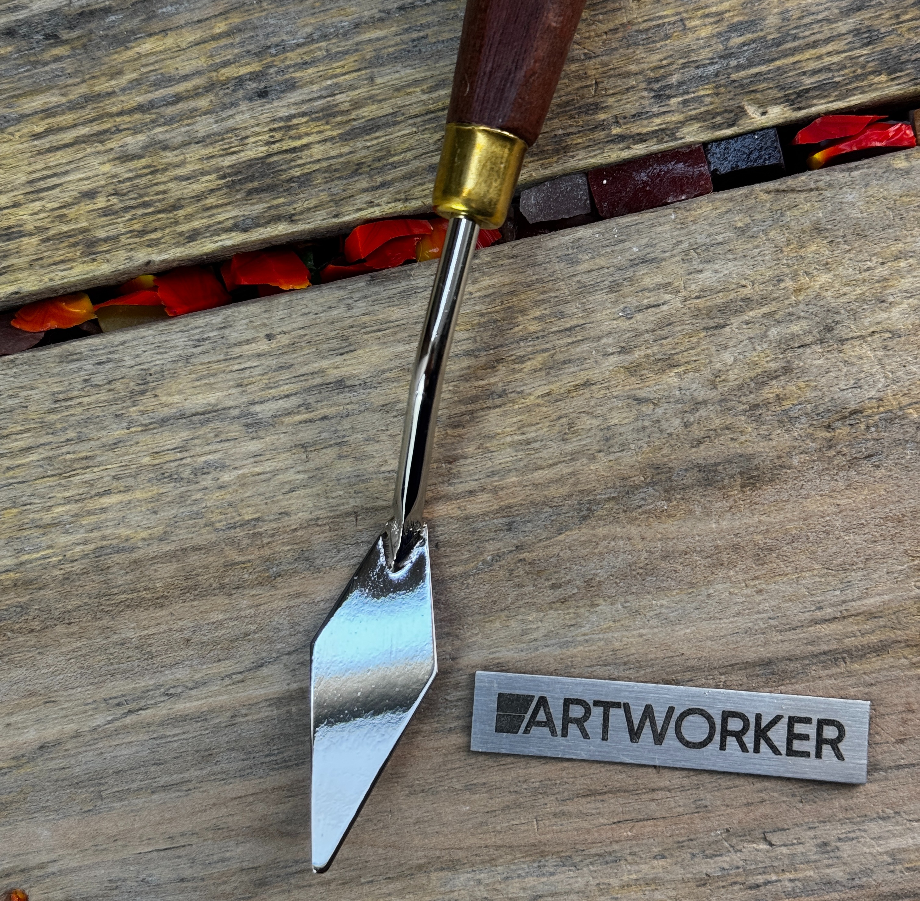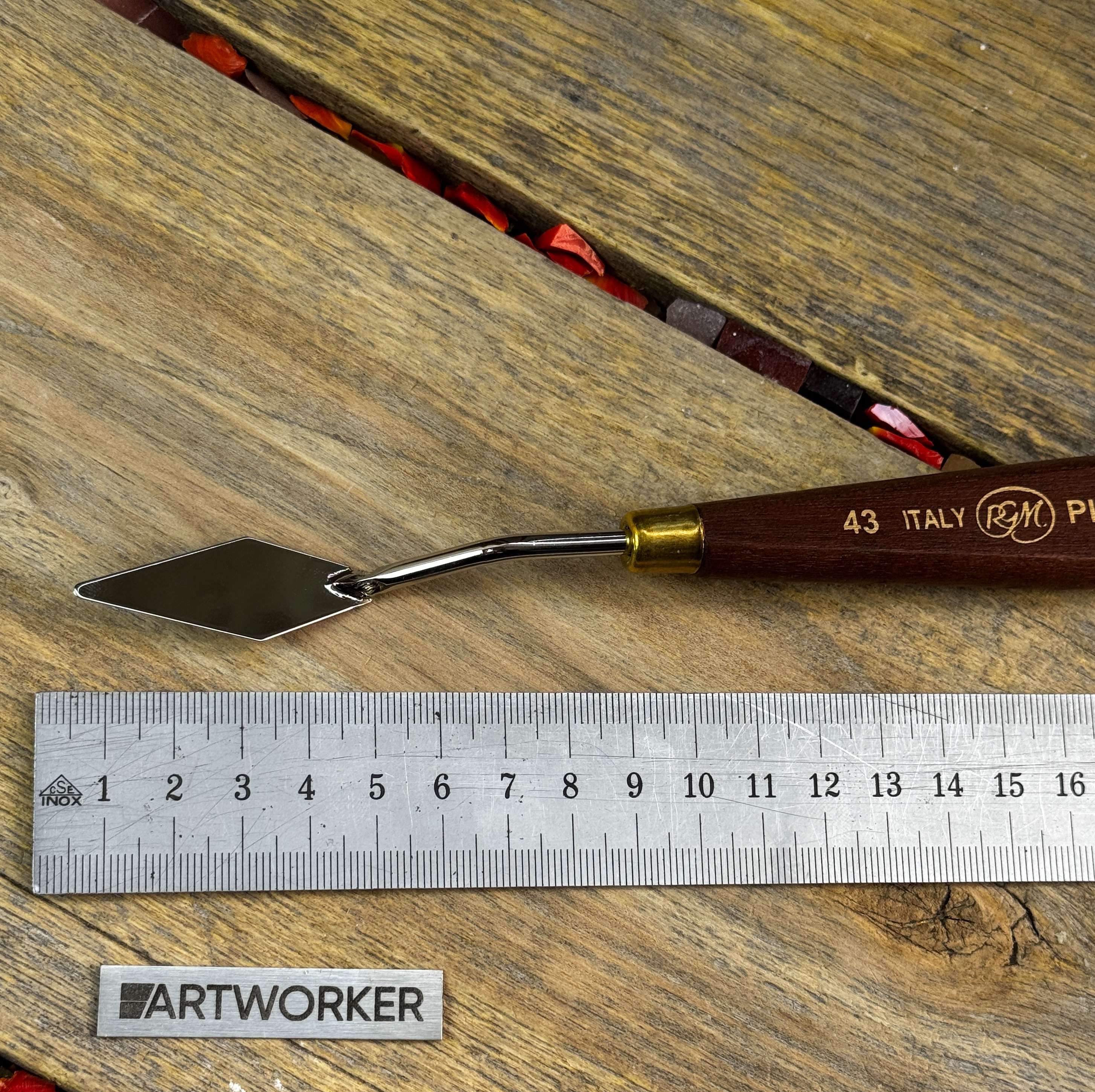 Профессиональный инструмент для мозаики - мастихин. Предназначен для нанесения клея или краски на поверхность. Производство Италия.