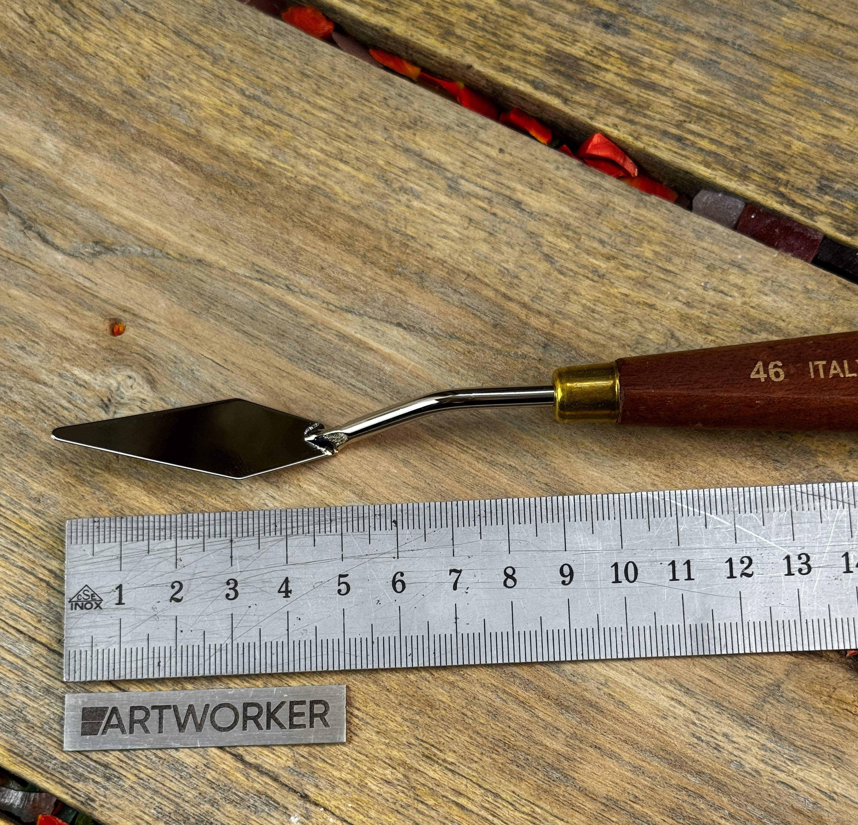 Профессиональный инструмент для мозаики - мастихин. Предназначен для нанесения клея или краски на поверхность. Производство Италия.
