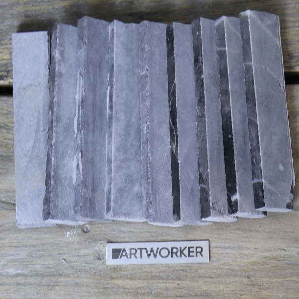 Натуральный камень (мрамор, травертин), пиленный на длинные узкие брусочки. Можно использовать в мозаике в готовом виде, или наколоть на определенный модуль, подходящий под вашу работу/картон.