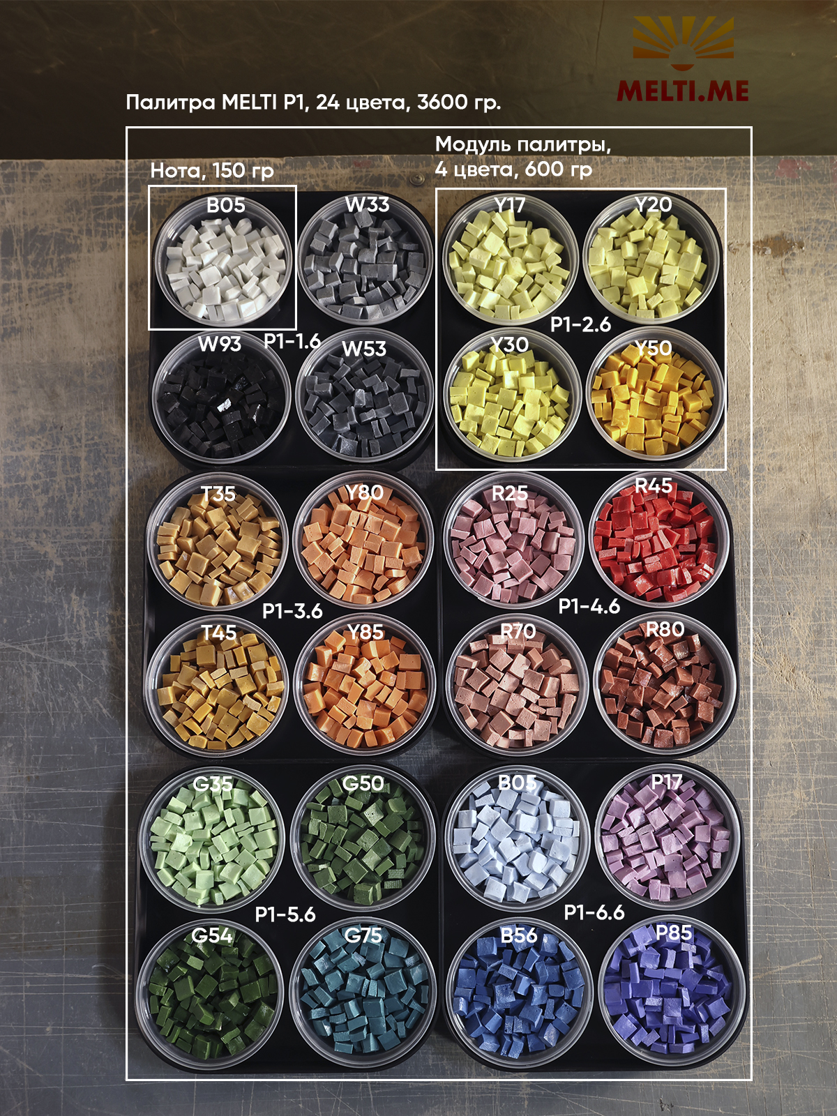 Колотая смальта MELTI K09 B56 по палитре — это стеклянный мозаичный материал для художественных и декоративных работ.