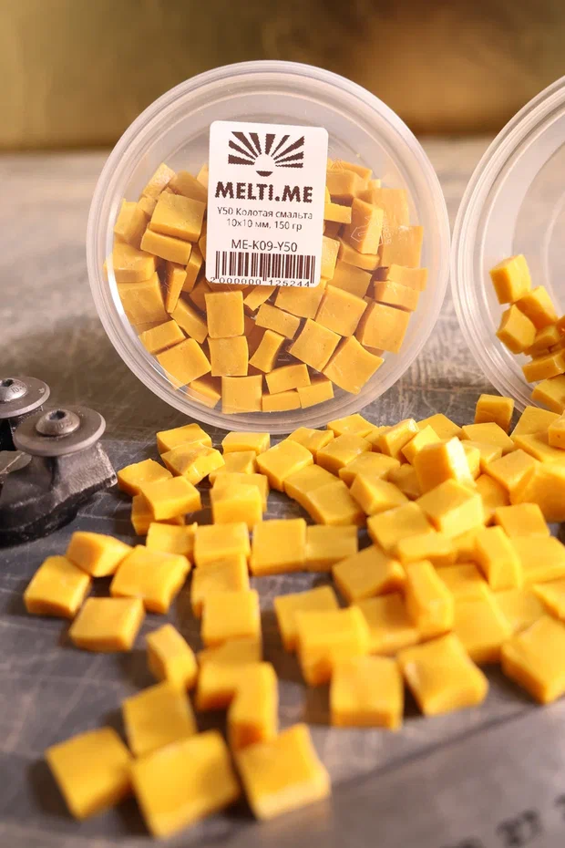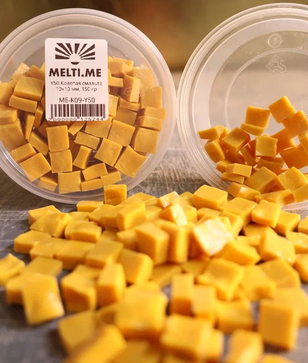 Колотая смальта MELTI K09 Y50 по палитре — это стеклянный мозаичный материал для художественных и декоративных работ.