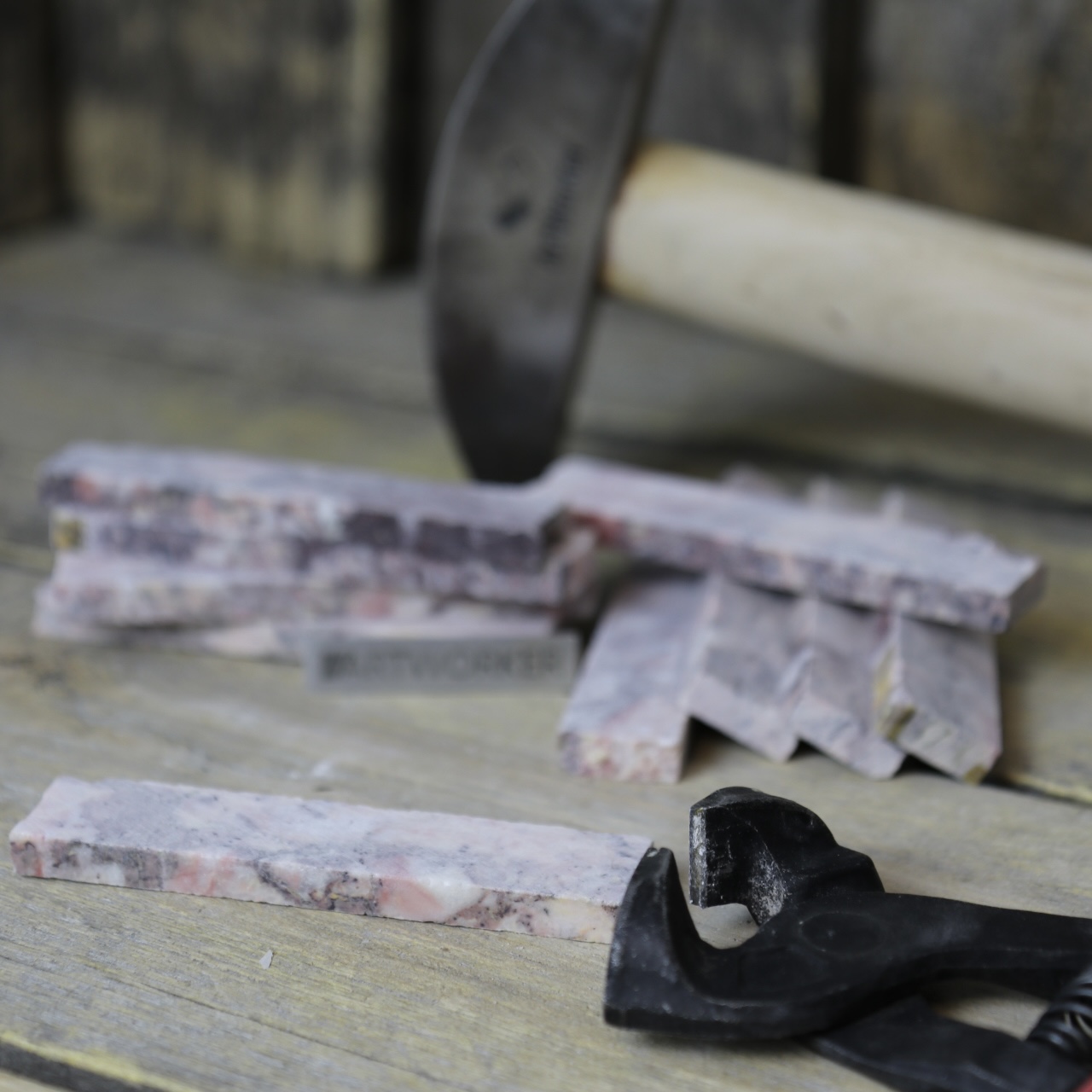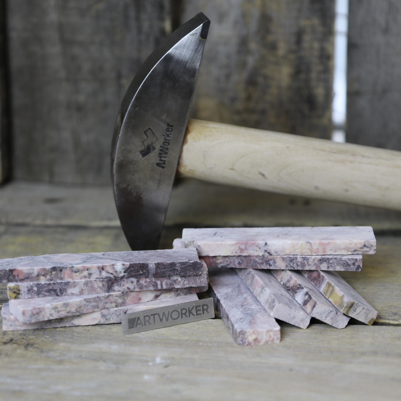 Обращаем ваше внимание, что одних кусачек будет недостаточно для работы с пиленным камнем, кусачки пригодятся для работы с уже наколотым материалом. Для работы с камнем в брусках потребуются молоток для колки смальты и харди (наковальня).