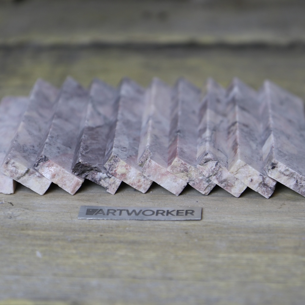 Натуральный камень (мрамор, травертин), пиленный на длинные узкие брусочки. Можно использовать в мозаике в готовом виде, или наколоть на определенный модуль, подходящий под вашу работу/картон.