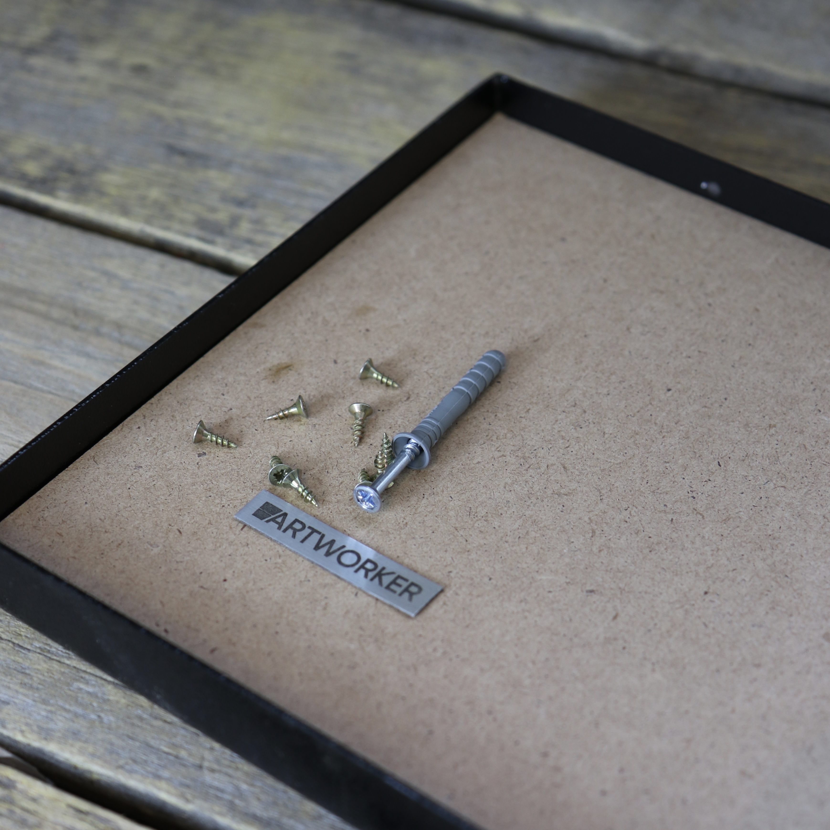 В комплекте идут крипежи. Размер рамки 20х20х2,5