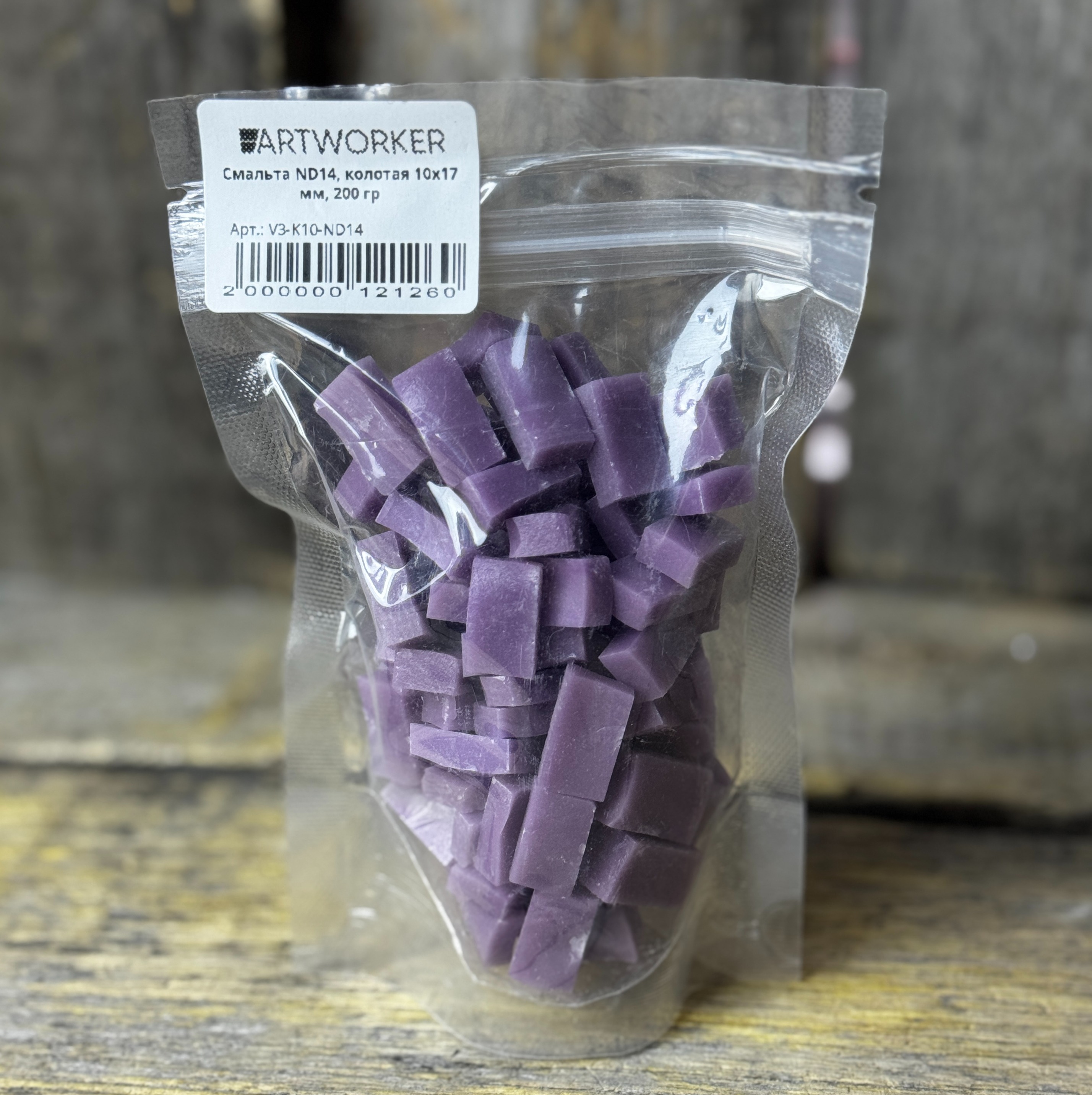 Смальта для мозаики фиолетовая. Производство ArtWorker, колотая 10х17 мм, 200 г. Вес каждого пакета ± 10 грамм.
