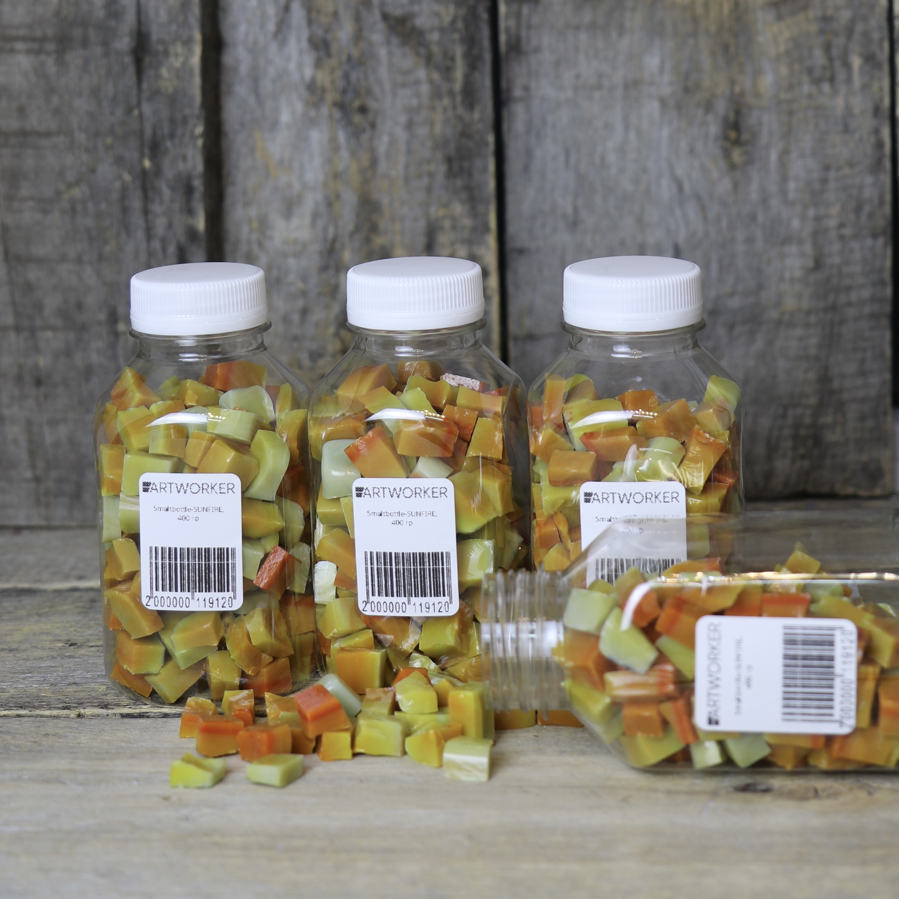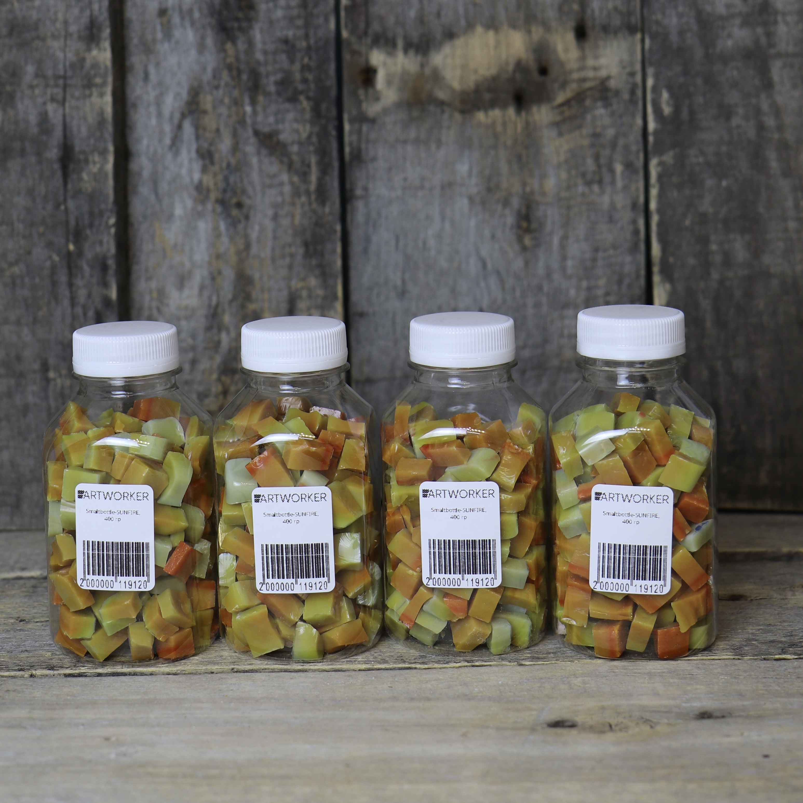 Бутылка с оранжевой смальтой — яркое украшение для вашего творчества и декора. Смальта в этой бутылке представляет собой мелкие стеклянные или керамические кусочки насыщенных оранжевых цветов, которые могут немного варьироваться по оттенкам, создавая живую и необычную палитру. Вес изделия составляет примерно 400 грамм, что делает её удобной для использования и хранения.