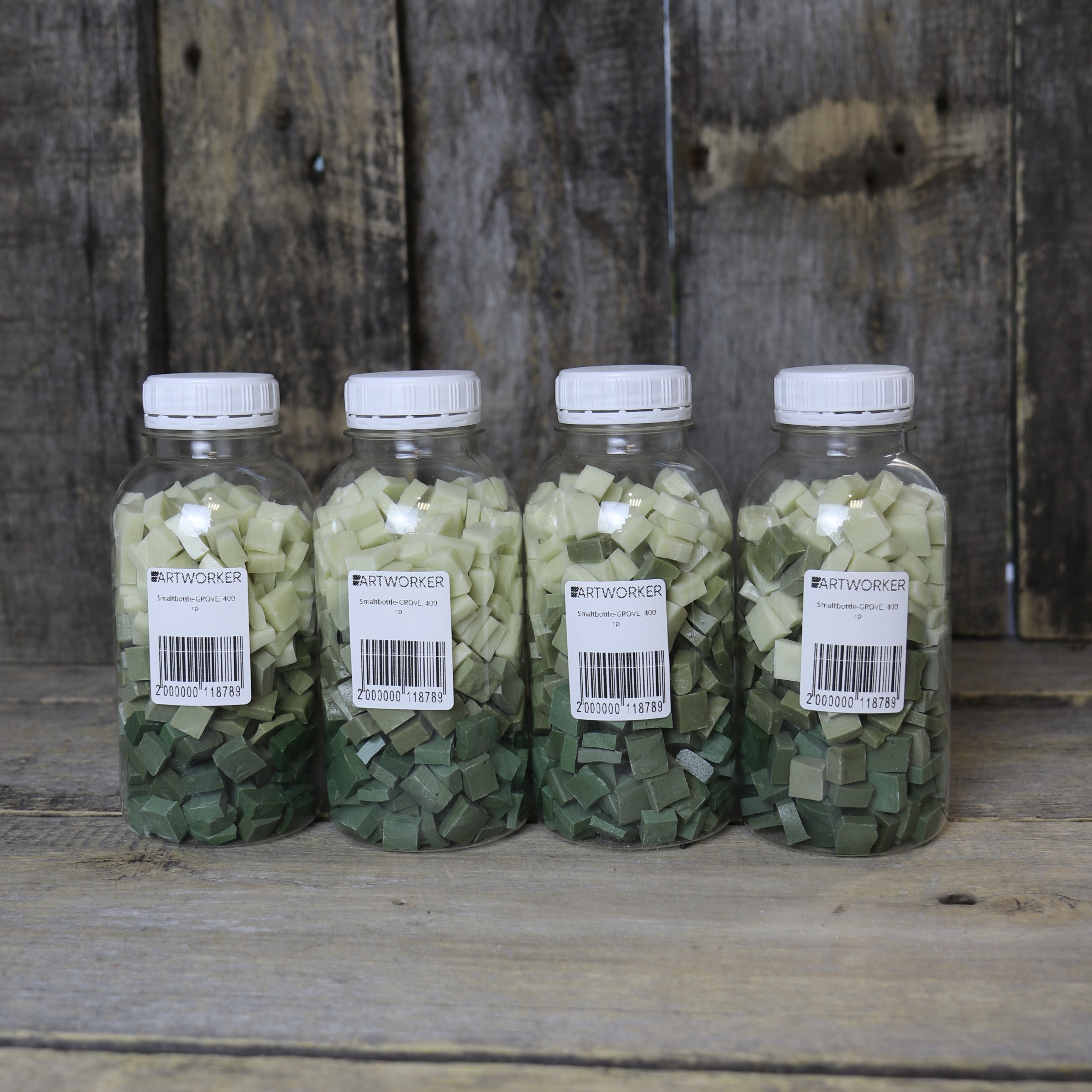 Бутылка с зеленой смальтой — яркое украшение для вашего творчества и декора. Смальта в этой бутылке представляет собой мелкие стеклянные или керамические кусочки насыщенного цвета, которые могут немного варьироваться по оттенкам, создавая живую и необычную палитру. Вес изделия составляет примерно 400 грамм, что делает её удобной для использования и хранения.