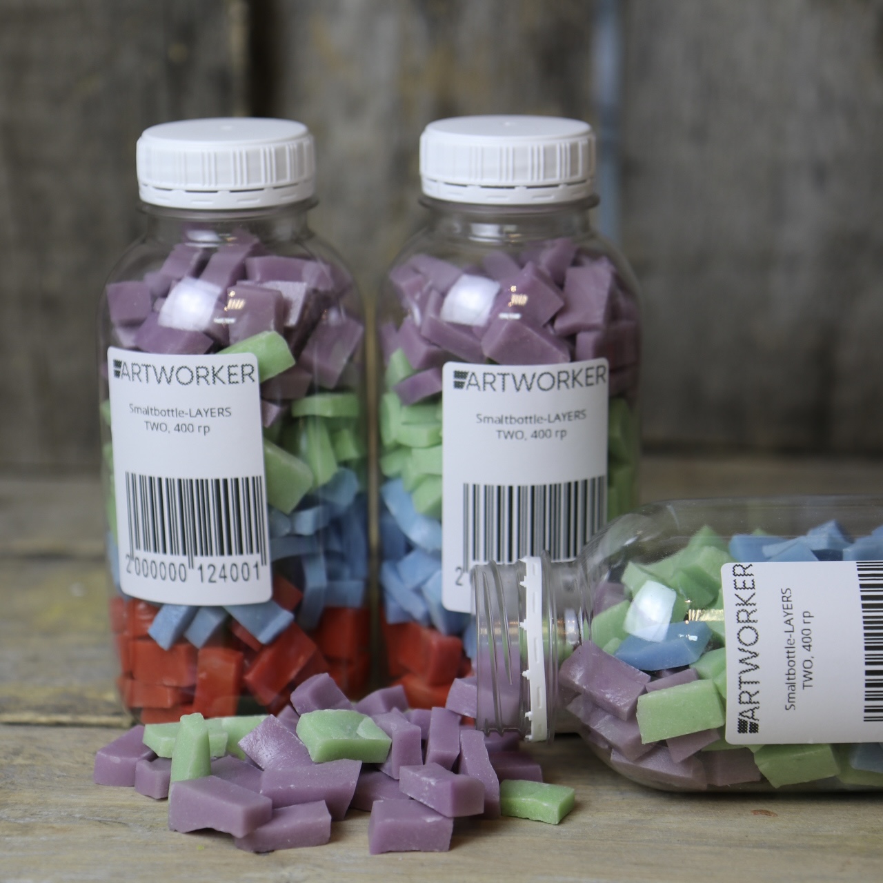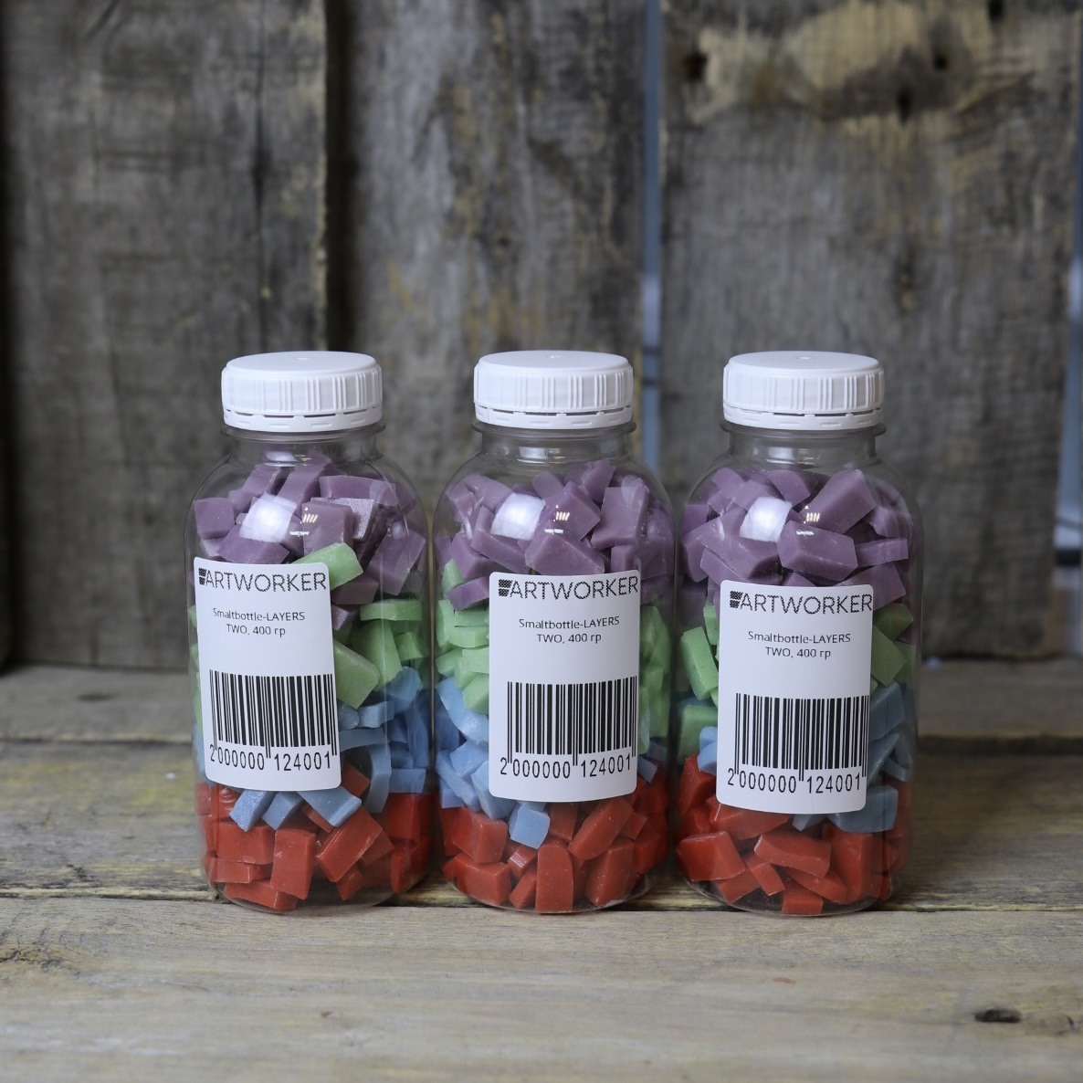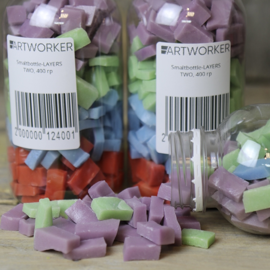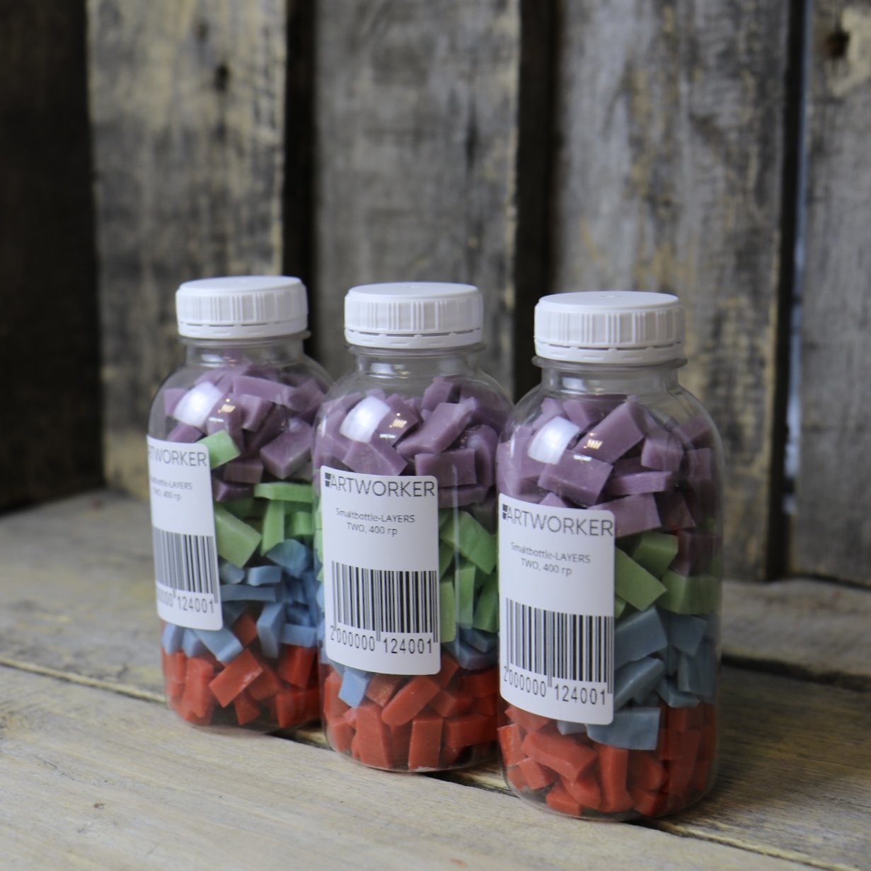 Бутылка с фиолетовой, зеленой и красной смальтой — яркое украшение для вашего творчества и декора. Смальта в этой бутылке представляет собой мелкие стеклянные или керамические кусочки насыщенного цвета, которые могут немного варьироваться по оттенкам, создавая живую и необычную палитру. Вес изделия составляет примерно 400 грамм, что делает её удобной для использования и хранения.