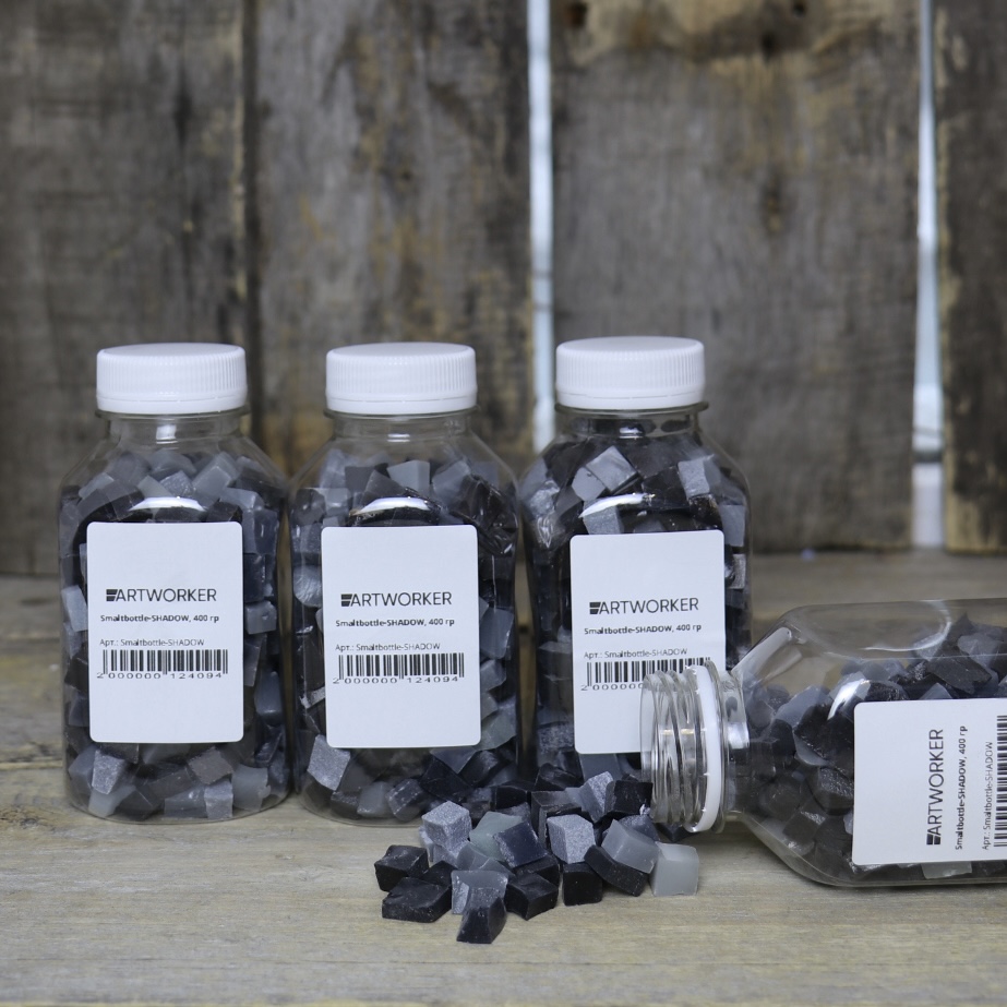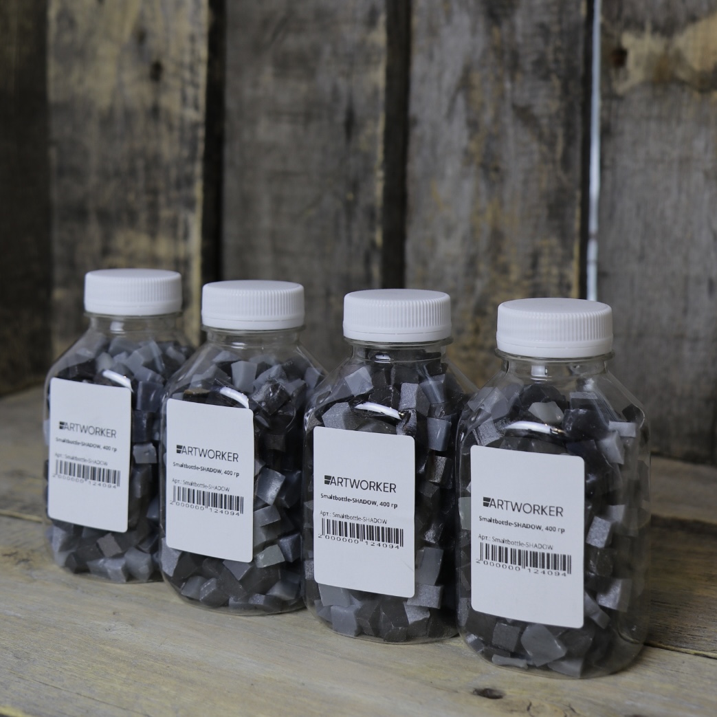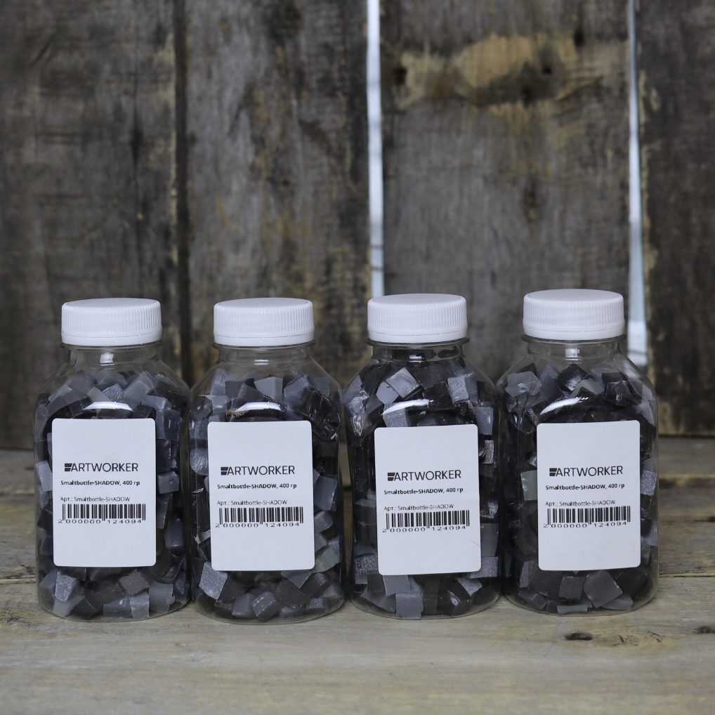 Бутылка с черной и серой смальтой — яркое украшение для вашего творчества и декора. Смальта в этой бутылке представляет собой мелкие стеклянные или керамические кусочки насыщенного черного цвета, которые могут немного варьироваться по оттенкам, создавая живую и необычную палитру. Вес изделия составляет примерно 400 грамм, что делает её удобной для использования и хранения.