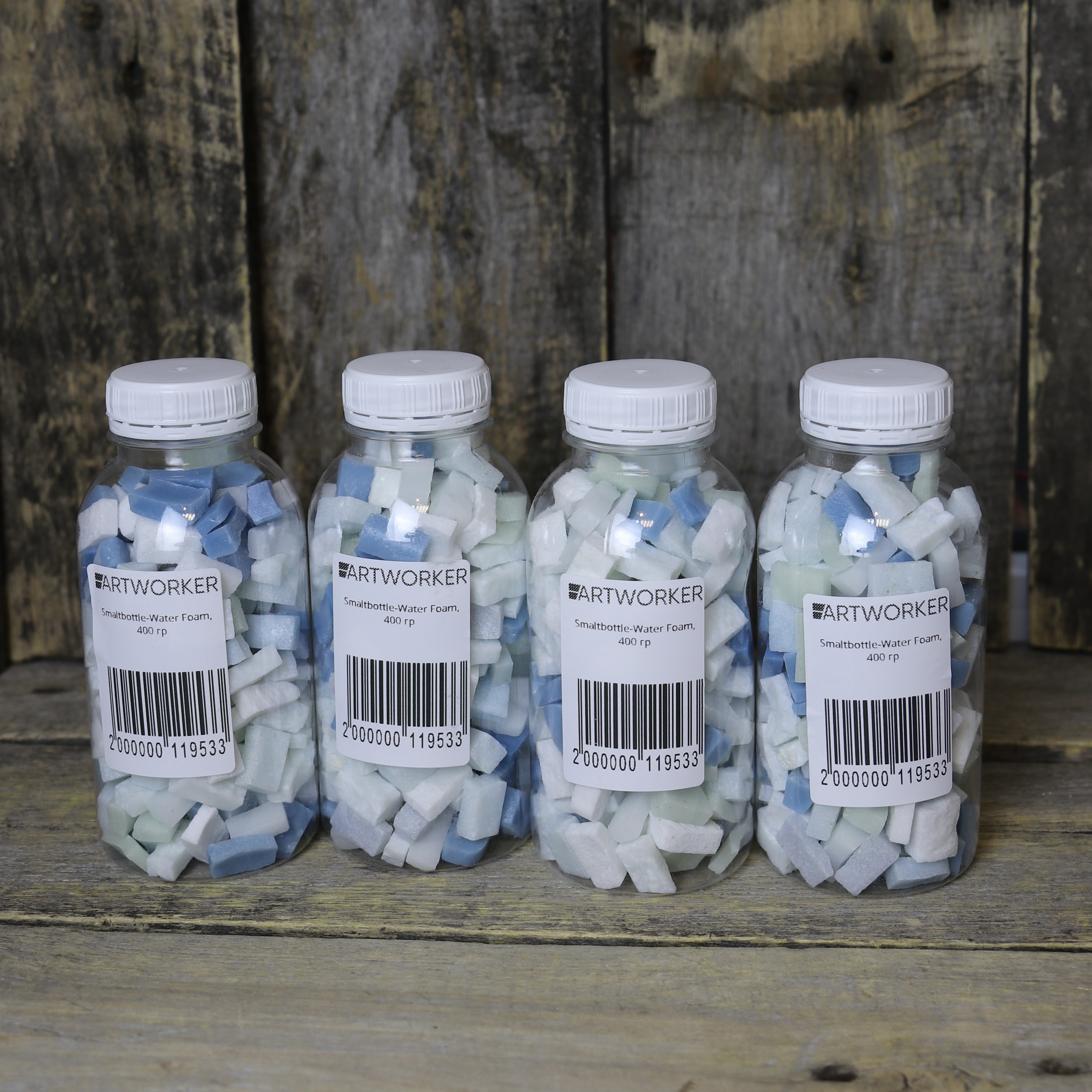 Бутылка со смальтой голубой — яркое украшение для вашего творчества и декора. Смальта в этой бутылке представляет собой мелкие стеклянные или керамические кусочки насыщенного голубого цвета, которые могут немного варьироваться по оттенкам, создавая живую и необычную палитру. Вес изделия составляет примерно 400 грамм, что делает её удобной для использования и хранения.