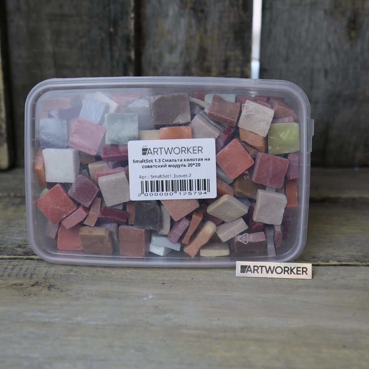 Смальта имеет увеличенный модуль, что очень удобно как для создания больших работ, так и для наколки более мелкого модуля. Смальта поставляется в пластиковых контейнерах, что делает их использование, транспортировку и хранение очень удобным. Наборы SMALTI SET имеют яркие оттенки смальты. Подходит для создания творческих работ в мозаичной технике, проста в обращении, идеальна для обучения. Для работы со смальтой серии SMALTI SET вам дополнительно потребуются дисковые кусачки для мозаики, форма для инкрустации, пинцет, мастихин, клей и пластификатор. Цвет смальты на фотографии может отличатся от цвета смальты в заказе. Набор цветов в серии SMALTI SET может меняться от партии к партии и содержать только некоторые цвета из представленных на фотографии в рамках одной цветовой гаммы.