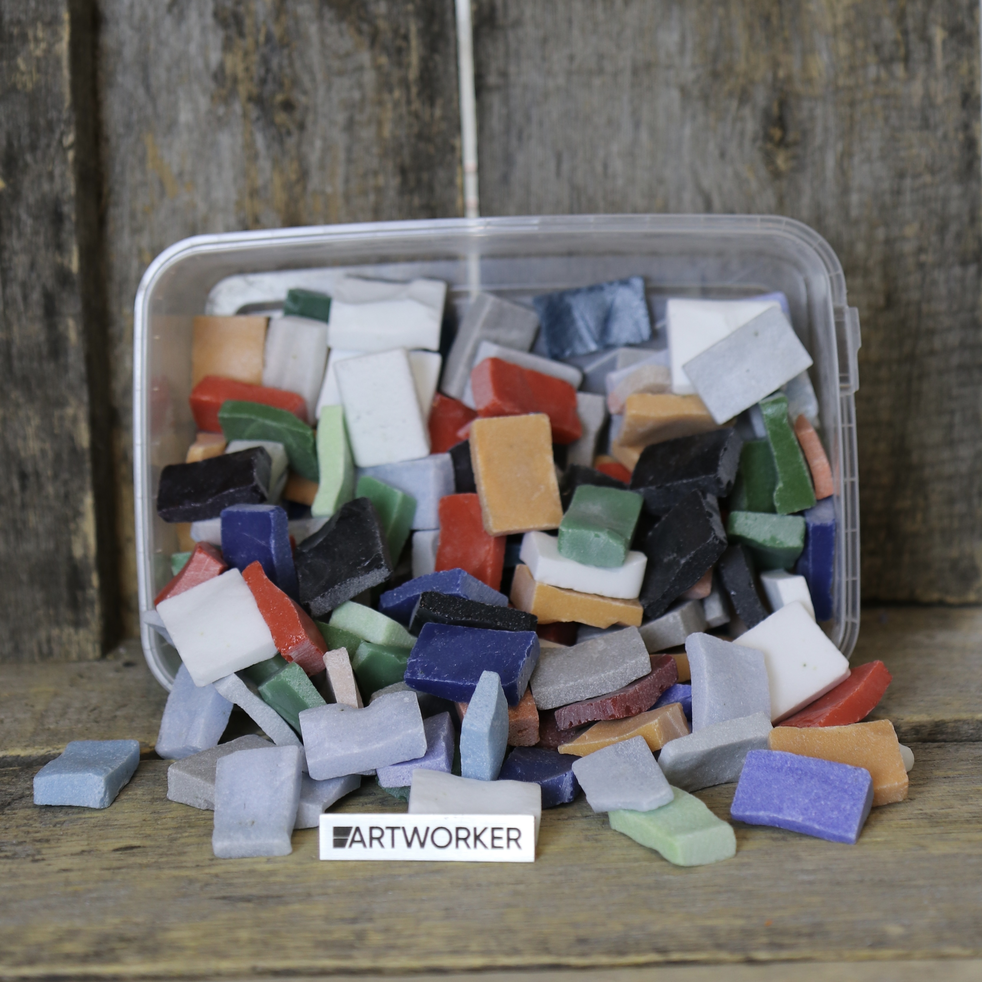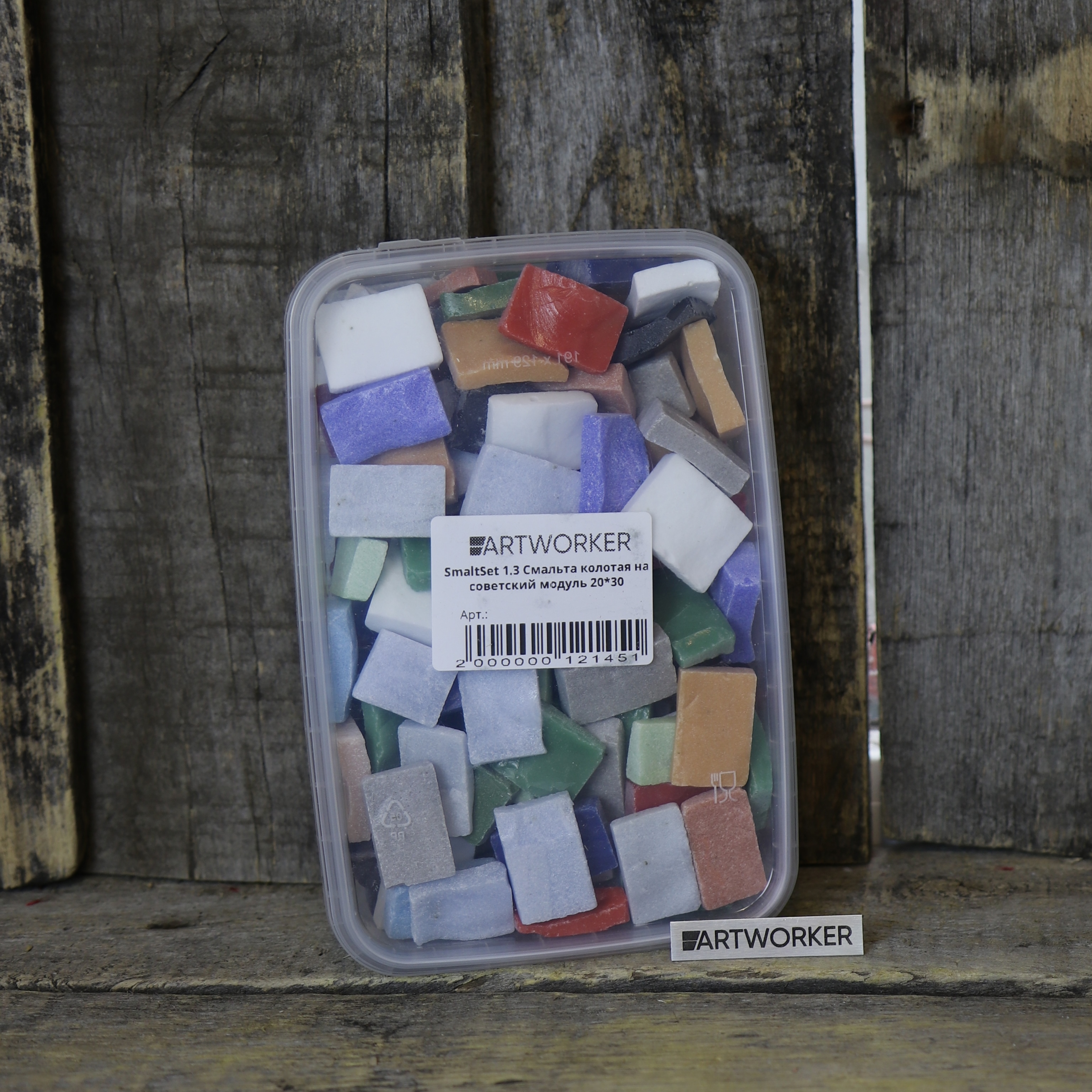 Смальта имеет увеличенный модуль, что очень удобно как для создания больших работ, так и для наколки более мелкого модуля. Смальта поставляется в пластиковых контейнерах, что делает их использование, транспортировку и хранение очень удобным. Наборы SMALTI SET имеют яркие оттенки смальты. Подходит для создания творческих работ в мозаичной технике, проста в обращении, идеальна для обучения. Для работы со смальтой серии SMALTI SET вам дополнительно потребуются дисковые кусачки для мозаики, форма для инкрустации, пинцет, мастихин, клей и пластификатор. Цвет смальты на фотографии может отличатся от цвета смальты в заказе. Набор цветов в серии SMALTI SET может меняться от партии к партии и содержать только некоторые цвета из представленных на фотографии в рамках одной цветовой гаммы.