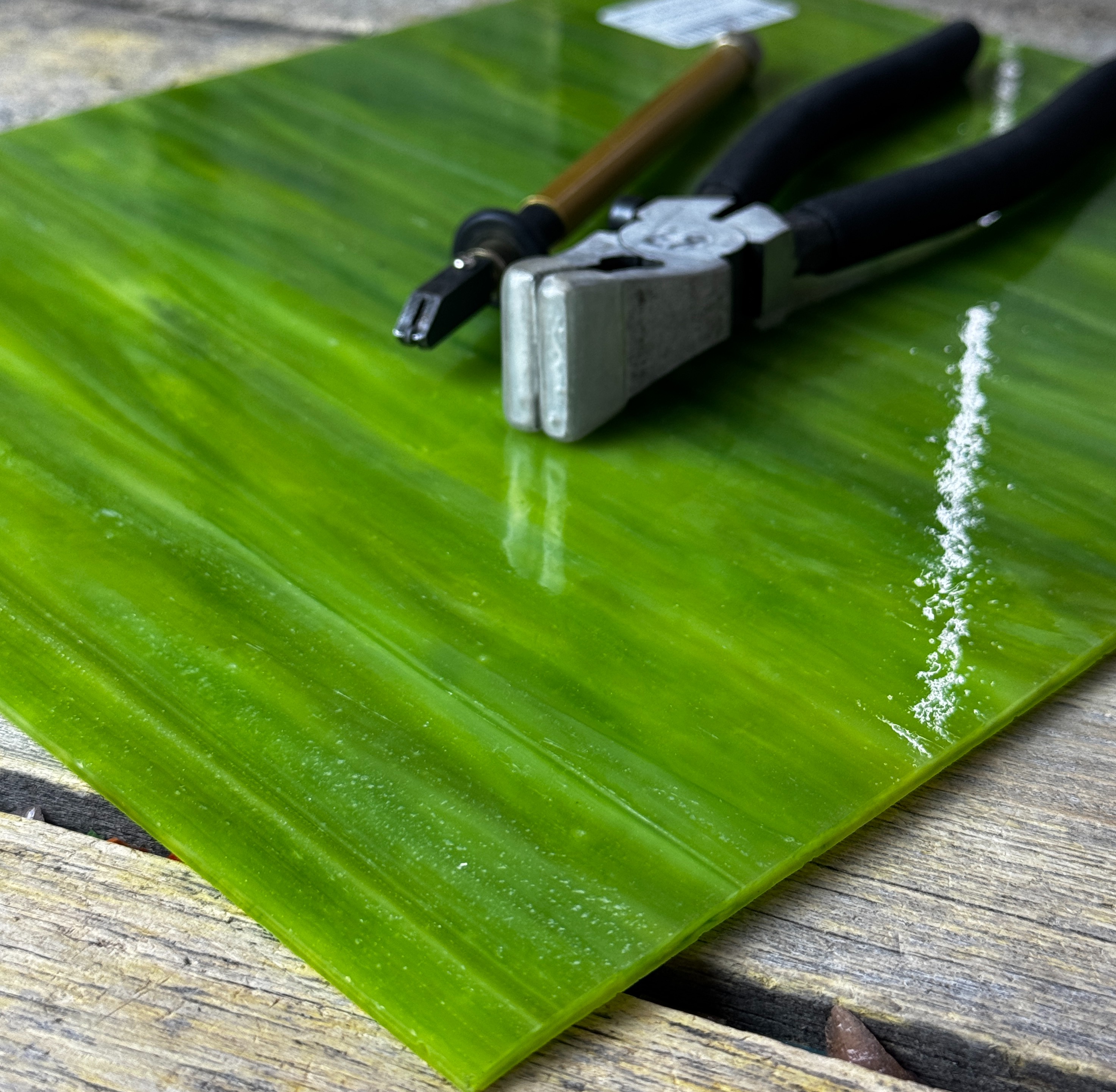 Разноцветное витражное стекло для мозаичных и витражных работ. Стекло режется стеклорезом и делится на модуль специальным отламывателем для стекла. На более мелкий модуль стекло удобно разделять при помощи специальных кусачек для стекла и мозаики.