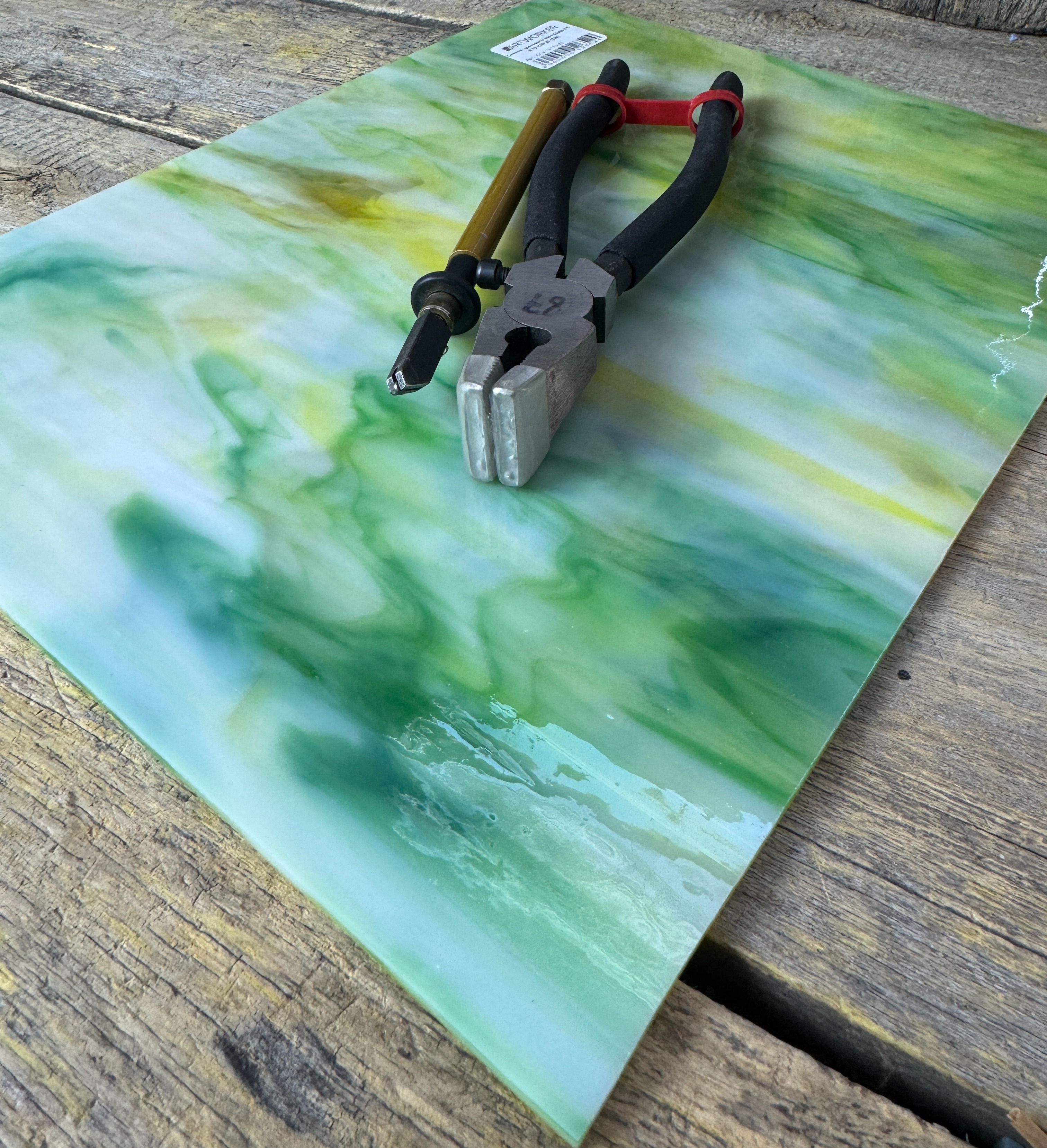 Разноцветное витражное стекло для мозаичных и витражных работ. Стекло режется стеклорезом и делится на модуль специальным отламывателем для стекла. На более мелкий модуль стекло удобно разделять при помощи специальных кусачек для стекла и мозаики.