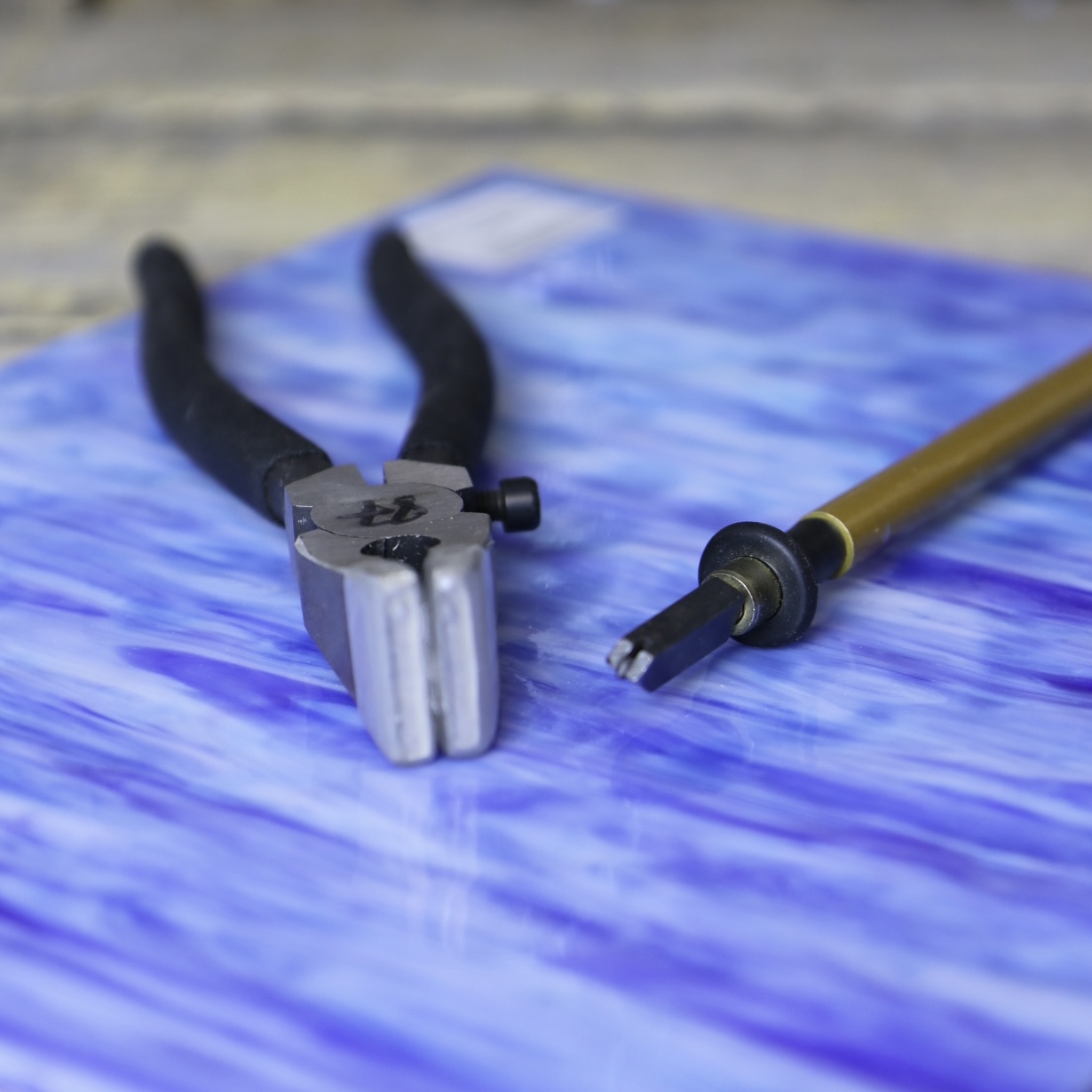 Разноцветное витражное стекло для мозаичных и витражных работ. Стекло режется стеклорезом и делится на модуль специальным отламывателем для стекла. На более мелкий модуль стекло удобно разделять при помощи специальных кусачек для стекла и мозаики.