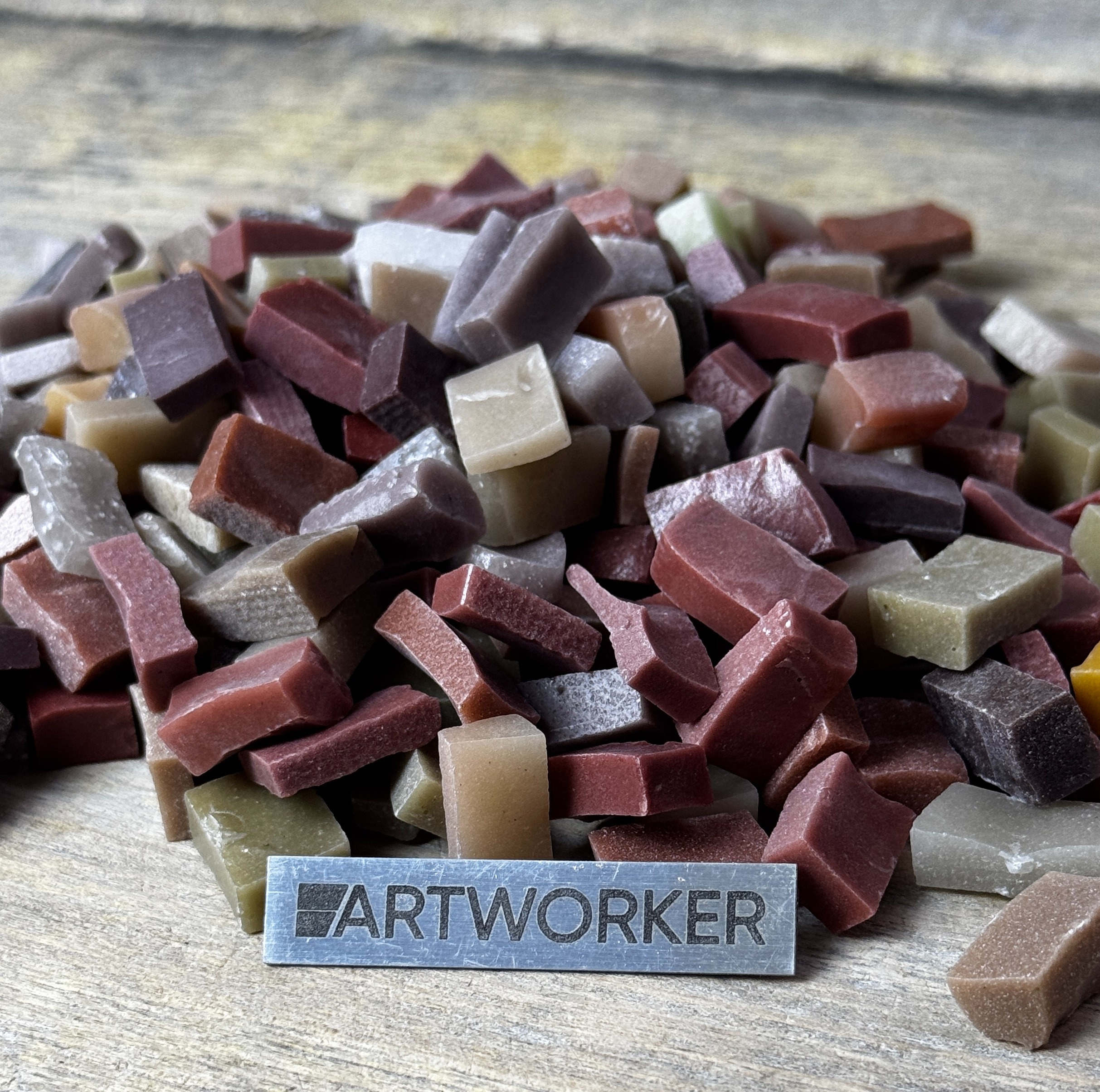 Цветная смальта коричневых и красных оттенков. Размер модуля 17х10х6 мм (+/- 2 мм).