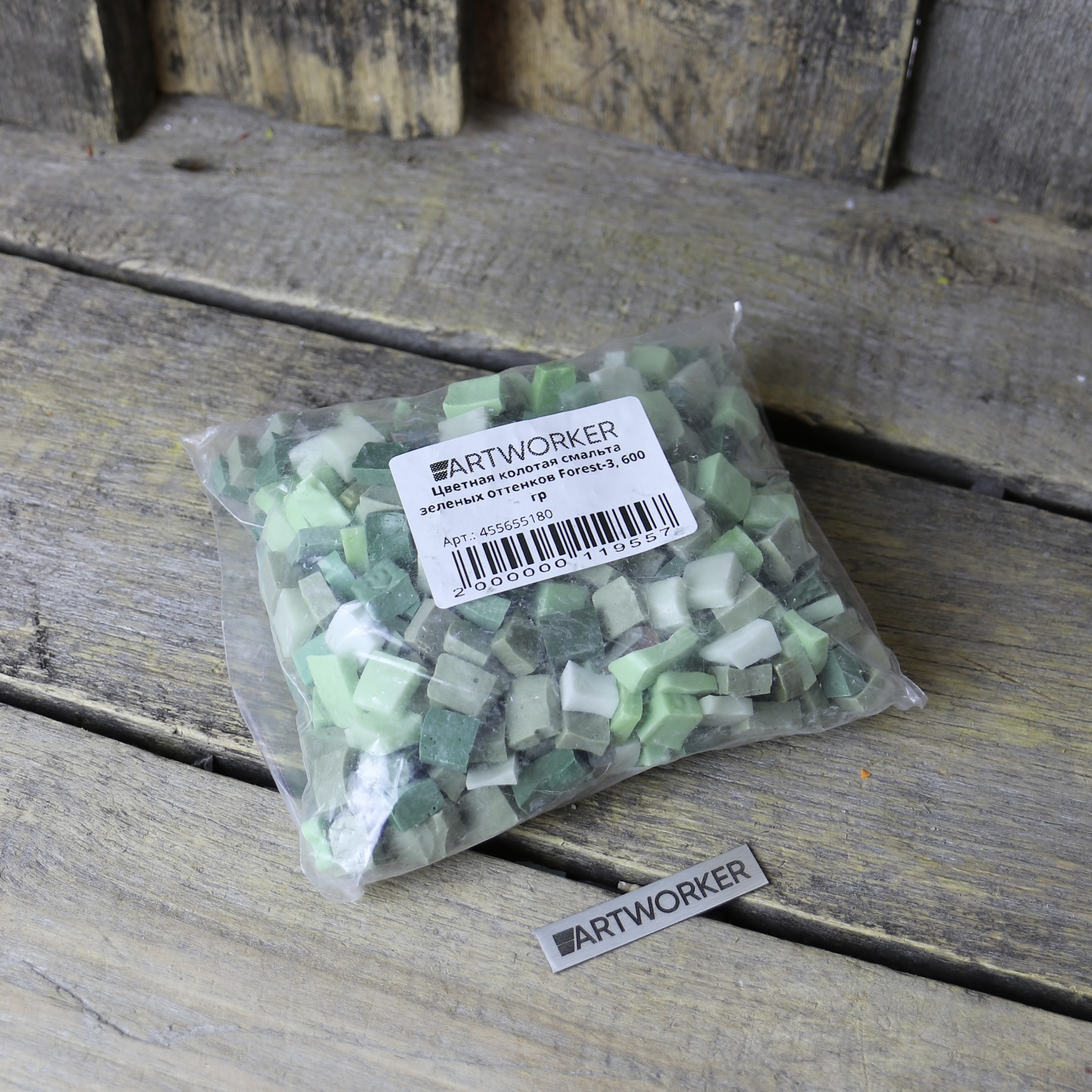 Цветная колотая смальта зеленых оттенков Forest-3, 600 гр