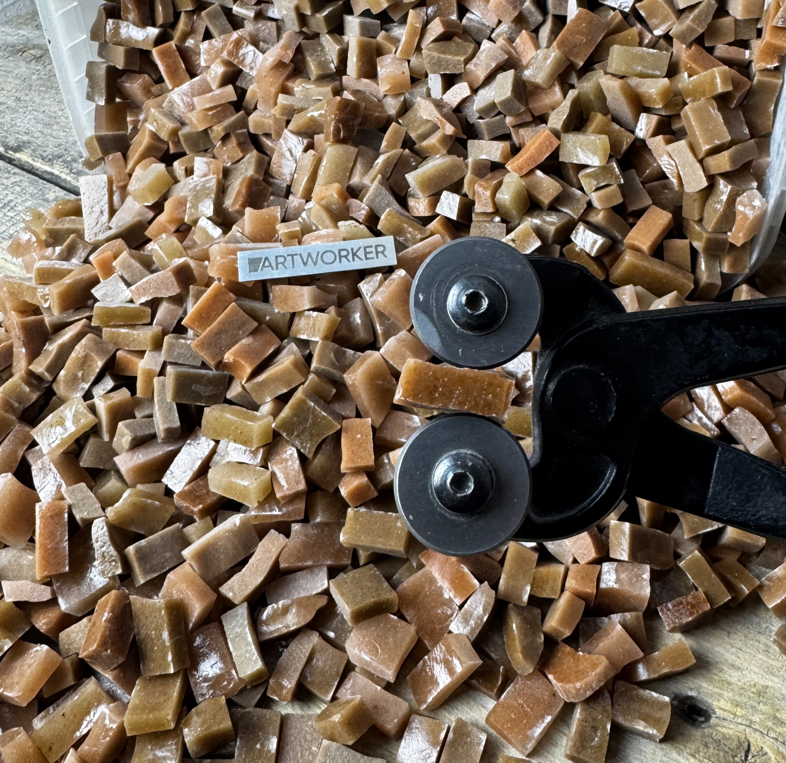 Для работы с мозаикой серии Blend вам дополнительно потребуются дисковые кусачки для мозаики, форма для инкрустации, пинцет, мастихин, клей и пластификатор.