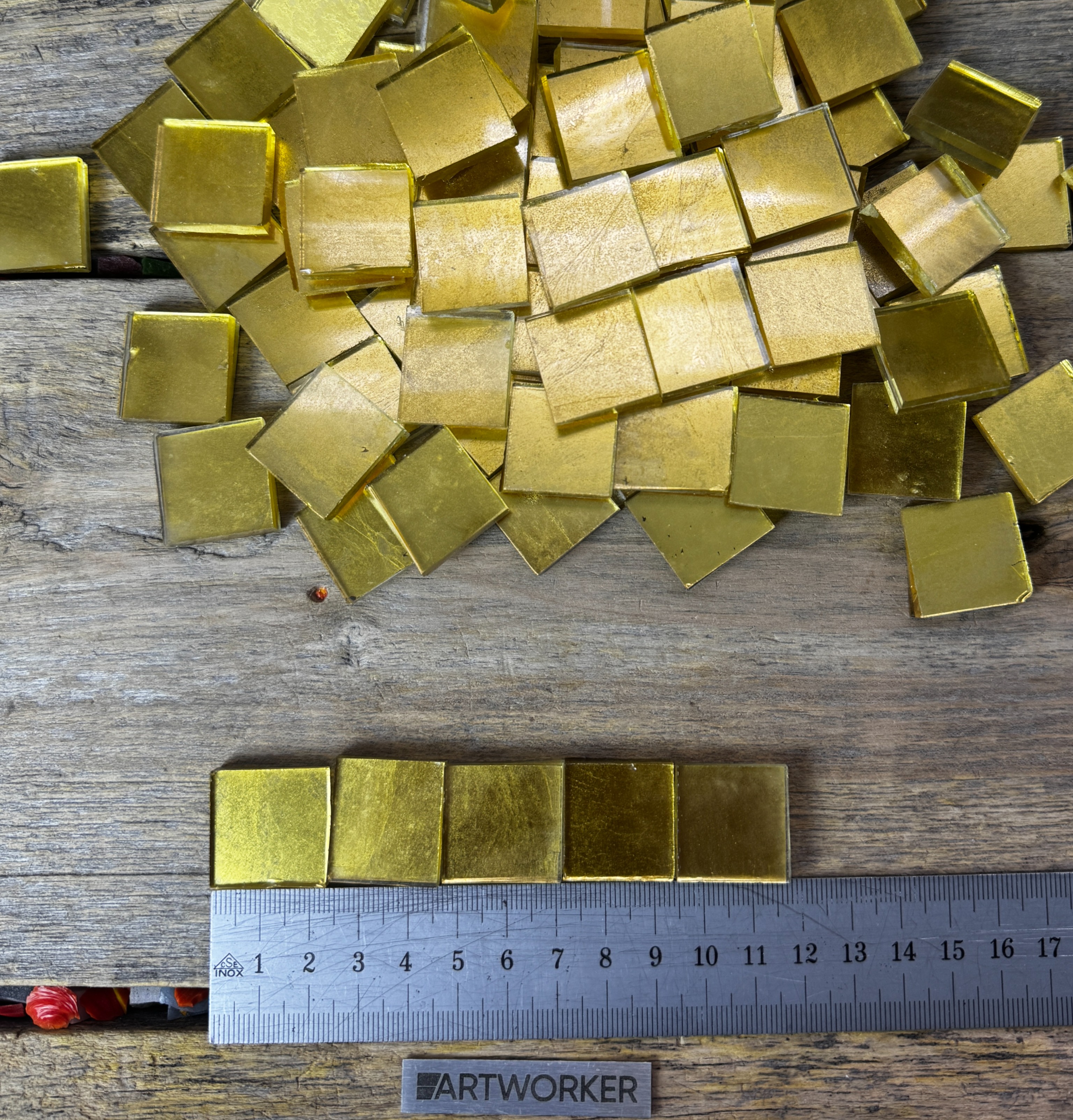 Золотая смальта, изготовлена с использованием настоящего сусального золота. Подходит для внутренних и наружных мозаичных работ.