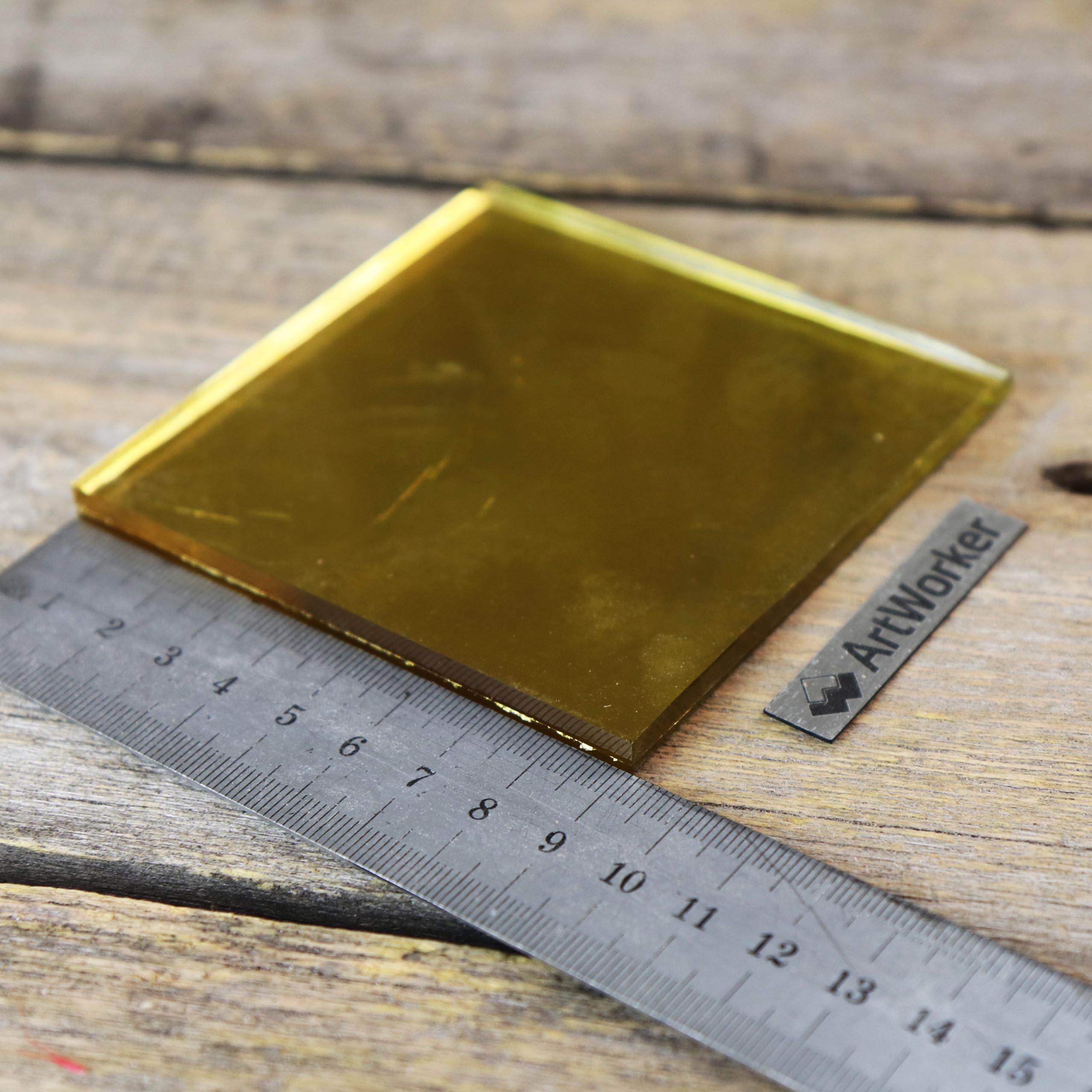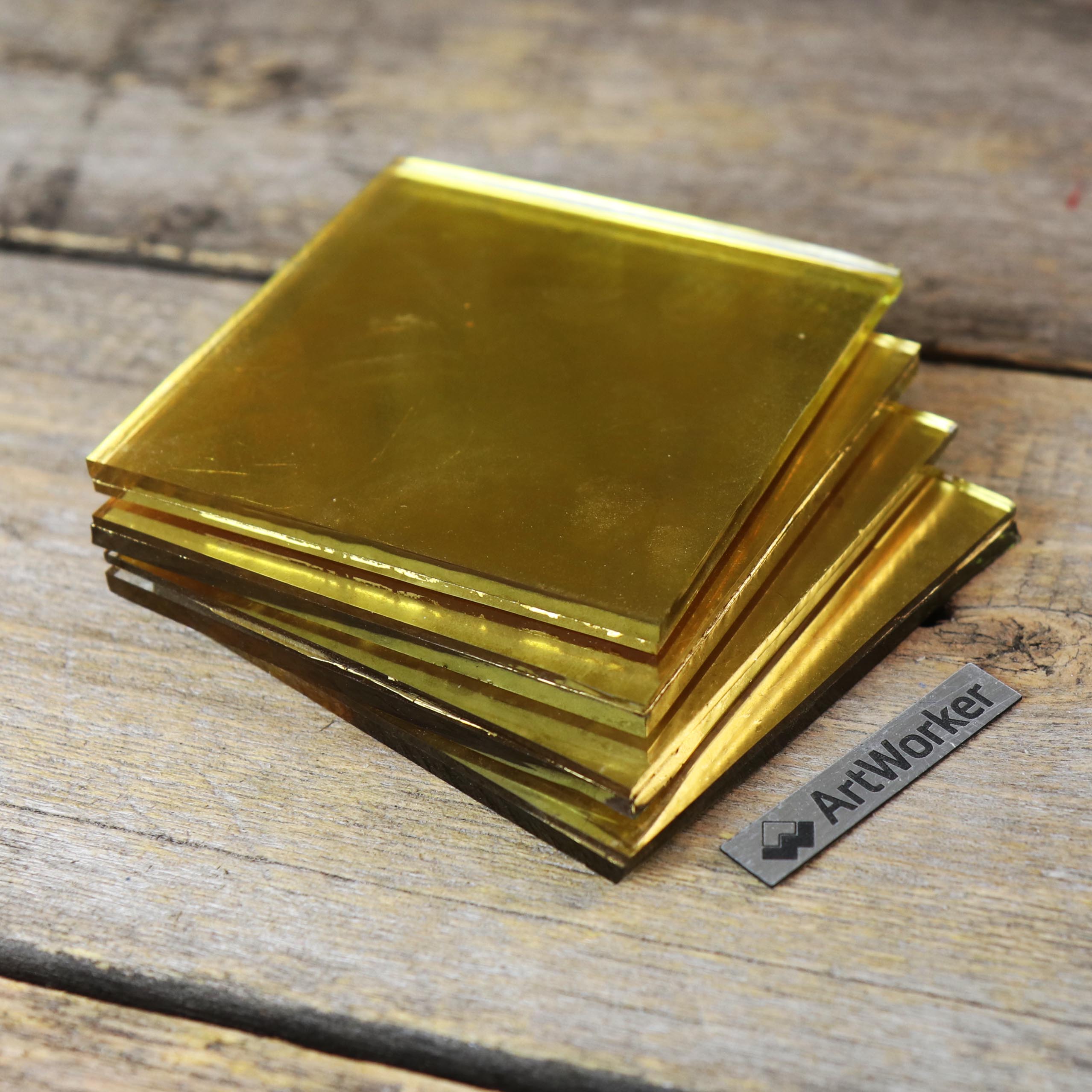 Золотая смальта для мозаики, размер плитки 91х91 мм, плотность золотого листа 2.5 гр. Сусальное золото запеченное между двумя стеклами 2 мм или 2 мм и 4 мм. Цена указана за 1 шт.